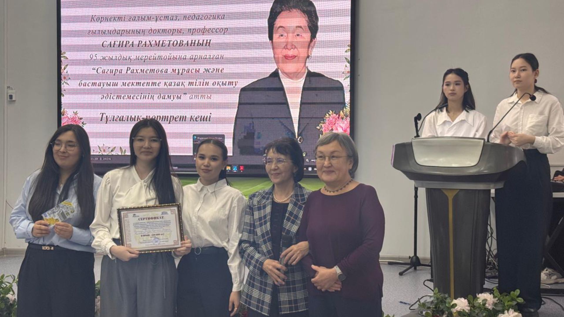 On March 3, 2026, a scientific and methodological evening dedicated to the 95th anniversary of the distinguished scholar and educator, Doctor of Pedagogical Sciences, Professor Sagira Rakhmetova, was held under the title «The Legacy of Sagira Rakhmetova and the Development of Methods for Teaching the Kazakh Language in Primary School». The main purpose of the event was to promote the scholar’s scientific and methodological legacy, to reassess her contribution to the development of Kazakh language teaching methods in primary education within the context of modern educational paradigms, and to present her professional path as an example for the younger generation. The event was organized by the Department of Primary Education. During the opening ceremony, the Head of the Department, Doctor of Pedagogical Sciences, Professor Aziya Yeleupanovna Zhumabayeva, delivered a welcoming speech, emphasizing Sagira Rakhmetova’s significant role in Kazakh pedagogy and the importance of the academic school she established. As part of the program, a video presentation highlighting the scholar’s life journey and academic achievements was shown, reflecting the depth of her pedagogical heritage and research contributions. Within the framework of the anniversary events, the results of the «Methodological STARTUP» competition were announced. The monetary awards for the winners were provided at the initiative and with the support of the faculty members of the Department of Primary Education. This gesture demonstrated profound respect for Sagira Rakhmetova’s legacy and professional support for future teachers. The winners presented their projects, showcasing practical examples of implementing the scholar’s ideas in a digital format. The honored guest of the evening was Sagira Rakhmetova’s daughter, Galiya, who expressed gratitude on behalf of the family. The scientific and methodological evening became not only a tribute to Sagira Rakhmetova’s outstanding work but also an important step toward continuing her ideas in the modern educational landscape.
