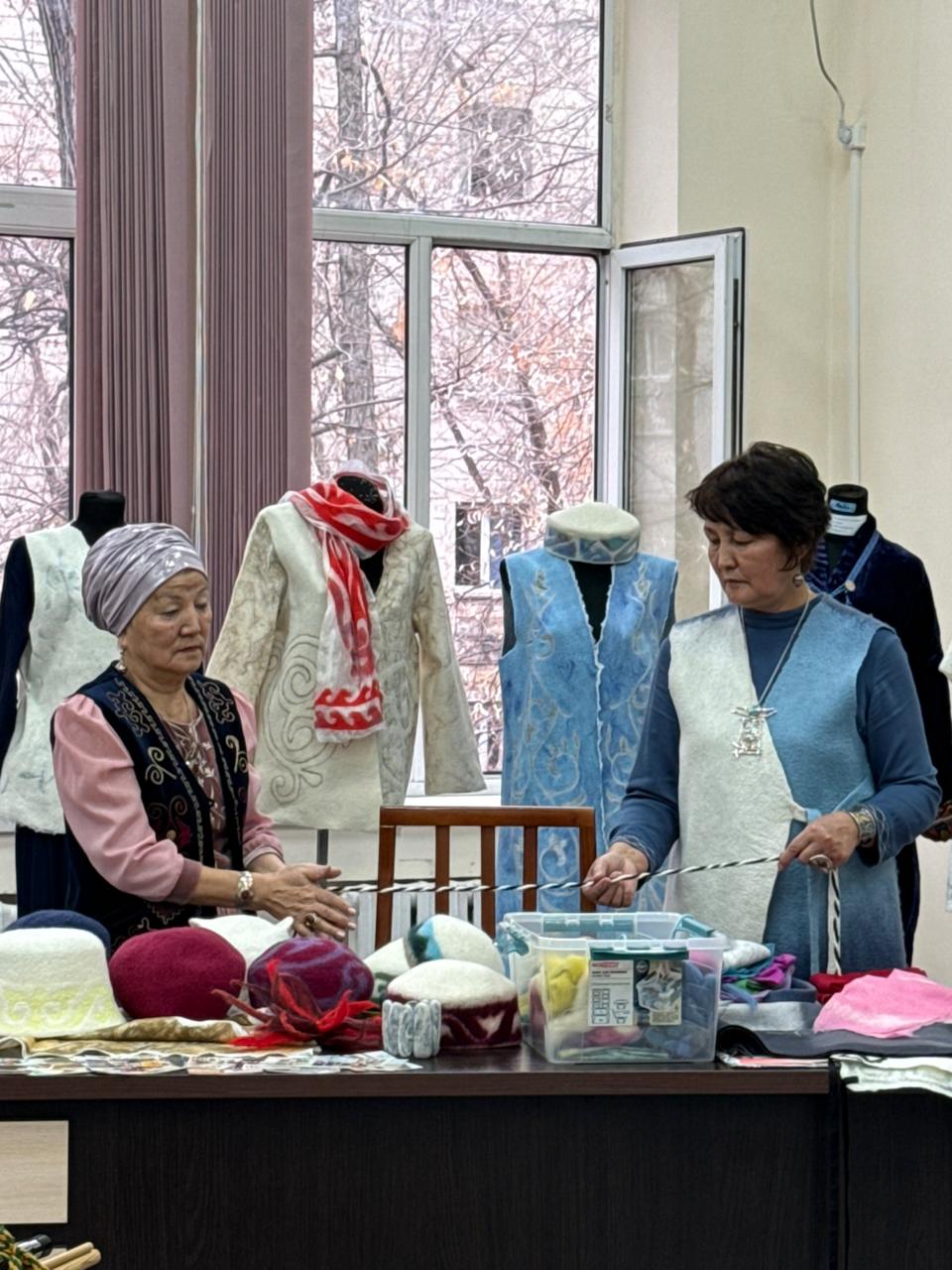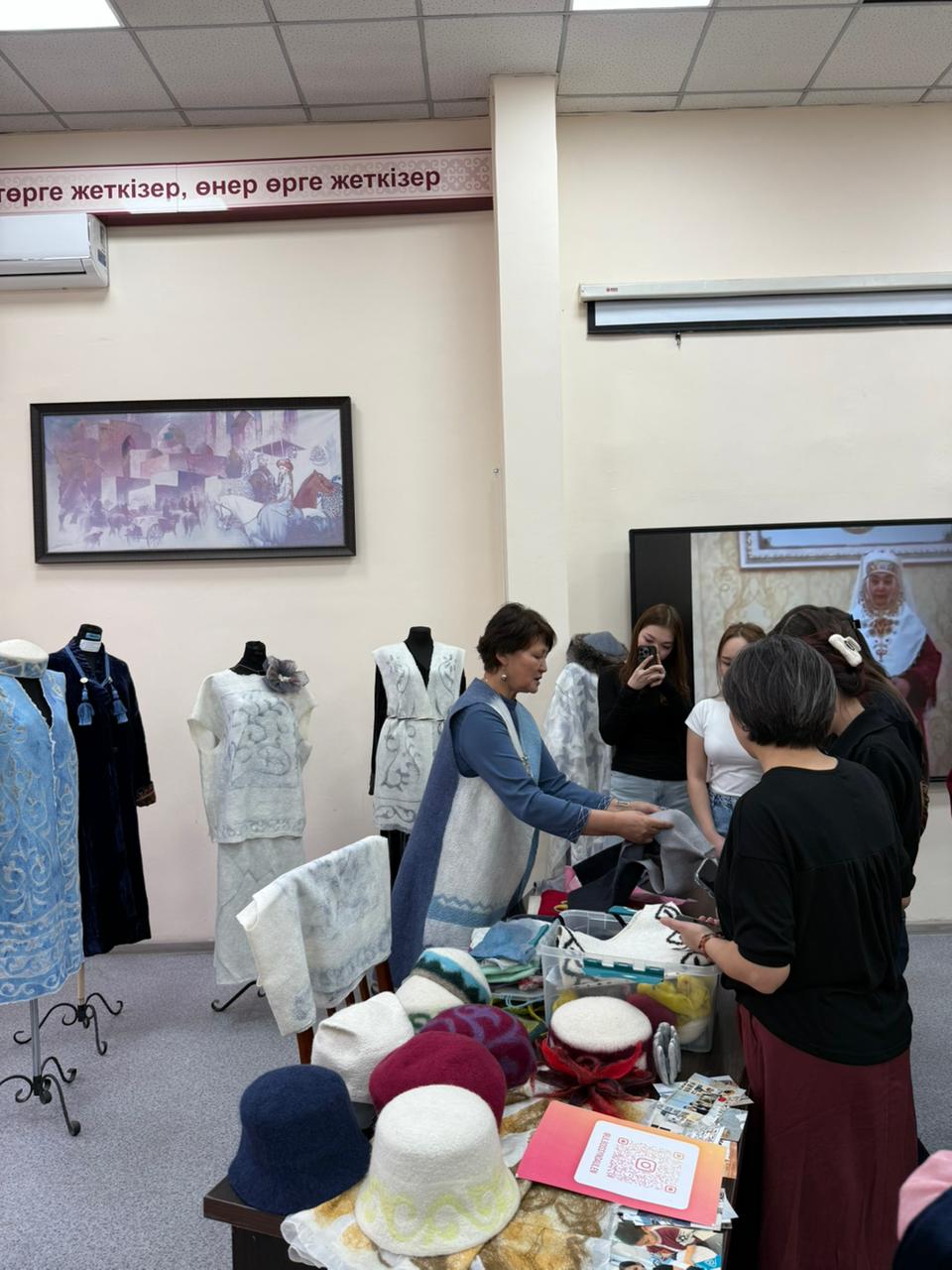 Кездесуде шеберлердің қолынан шыққан ұлттық киімдер мен қолөнер бұйымдарынан тұратын шығармашылық көрме ұйымдастырылды.