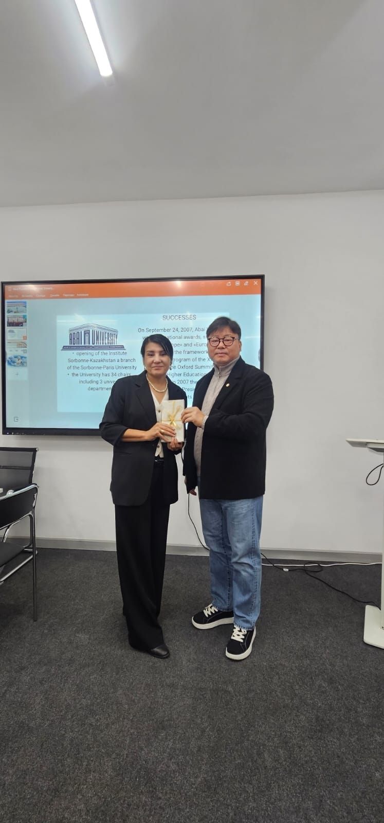 11 қараша 2025 жылы Абай атындағы Қазақ ұлттық педагогикалық университеті, Әлем тілдері факультетіне ресми сапармен Оңтүстік Корея Республикасының делегациясы келді. Делегация құрамында Сеул қаласының Чуннан муниципалдық округі кеңесінің (Seoul Jungnang District Council) депутаттары, сондай-ақ Корея Республикасының білім беру және мемлекеттік басқару салаларының өкілдері болды. Қонақтарды Шығыс филологиясы және аударма кафедрасының меңгерушісі Абдрахманова Г.Х., Практикалық ағылшын тілі кафедрасының меңгерушісі Төлегенова М.Б., Шет тілдері кафедрасының меңгерушісі Иватов С.К. және Әлем тілдері факультеті деканының халықаралық ынтымақтастық және әлеуметтік жұмыс жөніндегі орынбасары м.а. Жұмағұлов М.Е. қарсы алды. Кездесу барысында тараптар білім беру саласындағы серіктестік, академиялық ұтқырлық бағдарламалары, бірлескен ғылыми жобалар мен мәдени-ағартушылық бастамаларды жүзеге асыру мүмкіндіктерін талқылады. Корей тілі оқытушысы Құлтасов М.Е. университеттің халықаралық қызметі мен оқу бағдарламалары туралы мазмұнды презентация ұсынды. Әлем тілдері факультетінде қазіргі таңда корей тілін 300-ден астам студент оқып жүр, олардың ішінде корей тілін кәсіби деңгейде оқытуды мақсат еткен болашақ мамандар бар. Делегация мүшелері университеттің инфрақұрылымымен, оқу кабинеттерімен, мультимедиялық ресурстарымен танысып, корей тілі мен аударма мамандарын даярлауға арналған мүмкіндіктерге жоғары баға берді. Кездесу барысында корейлік тарап Қазақстанның корей тілі мамандарын даярлаудағы өңірлік жетекші орталық болу әлеуетін ерекше атап өтіп, ұзақ мерзімді ынтымақтастықты кеңейтуге мүдделі екенін танытты.