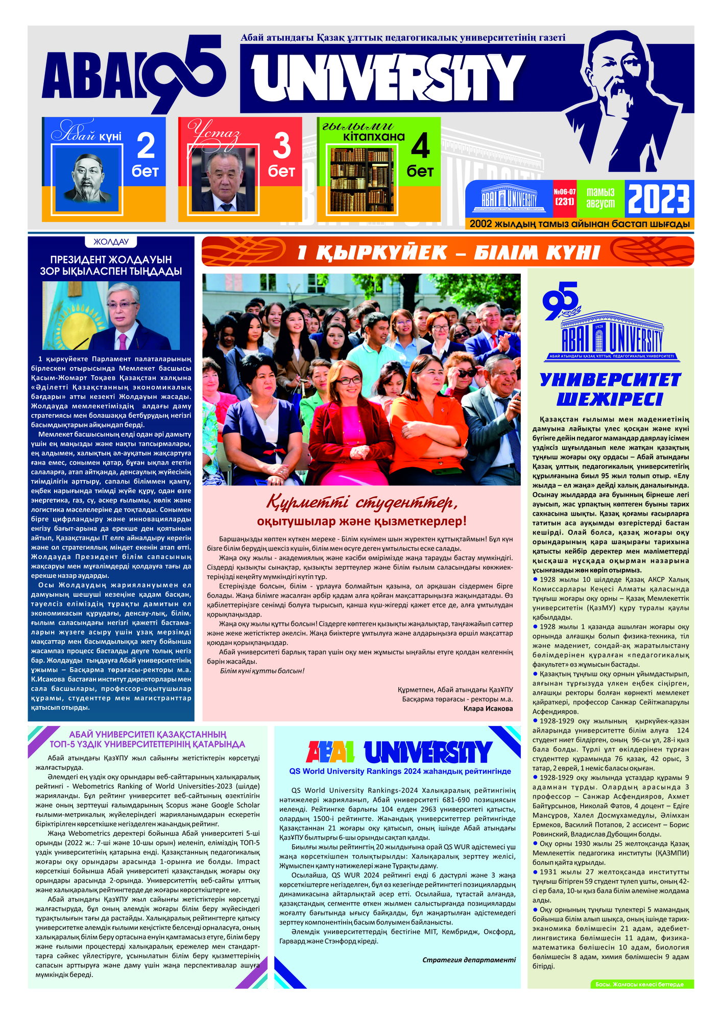 АБАЙ ЕЛІНЕ САЯХАТ Мемлекет басшысы Н.Ә. Назарбаевтың бағдарламалық мақаласында ұлттық жаңғыру, ұлттық кодты сақтау мәселесі ел дамуының негізгі қағидаларының бірі ретінде қарастырылады. Ұлттық кодты сақтау үшін салт-дәстүрлерімізді, тіліміз бен музыкамызды, әдебиетіміз бен жоралғыларымызды болашақ ұрпаққа жеткізу үшін Абайдың даналығы, Әуезовтің ғұламалығы, Жамбылдың жырлары мен Құрманғазының күйлері, ғасырлар қойнауынан жеткен бабалар үні - бір сөзбен айтқанда ұлттық рухымыз бойымызда мәңгі қалуға тиіс. Осы орайда университет ректоры Такир Оспанұлының тапсырмасымен ағымдағы жылдың 19-29 шілде күндері аралығында білім ордамыз бен Абайдың «Жидебай-Бөрілі» мемлекеттік қорық-музейі арасында өзара ынтымақтастықты орнату, ұлы ақынның мұраларымен тереңірек танысу мақсатында Тәрбие басқармасы жанындағы Әлеуметтік бөлім басшысы Е. Шарғынов, «Абайтану» орталығының директоры Ж. Шойымбет және 2 курс докторанты А. Ержанов арнайы іс-сапармен Семей қаласындағы Абай мұражайына барып қайтты. Танымдық іс-сапар Абай мен Шәкәрім жатқан қасиетті өлке Жидебайдан бастау алды. Жидебайдағы Абайдың қорық-музейіндегі және Абайдың немере інісі, қазақ халқының ардақты ақыны Шәкәрім Құдайбердіұлының соңғы қонысы болған Саят қорадағы құнды жәдігерлермен танысып, Абай мен Шәкәрімнің, Абайдың әжесі Зере, анасы Ұлжанның қабіріне барып зиярат етті. Одан кейін шежірелі Шыңғыстау бөктерінің тарихымен танысып, Мұхтар Әуезовтың туған жері Бөріліге де ат басын тіреді. Онкүндік іссапар барысында Семейдегі Бас мұражайдағы «Абай жолы: Алашты паш еткен әлемге» және жаңадан ашылған «Алашқа атым шыққан Әсет ақын» атты көрме залдарын, «Алаш арыстары - М.Әуезов» мұражай-үйі ғимараты және Абай Құнанбайұлы білім алған Ахмет Риза мешіт-медресесін тамашалады. Алдағы уақытта Абай атындағы Қазақ Ұлттық педагогикалық университеті мен Абайдың «Жидебай-Бөрілі» мемлекеттік қорық-музейінің өзара ынтымақтастығын дамыту және шығармашылық қарым-қатынасты нығайту мақсатында меморандумға қол қойылып, екіжақты ынтымақтастықтың белгісі ретінде музей қызметкерлеріне университетіміздің Тәрбие басқармасы шығарған «Абай айтады» және «Абай лұғаты» атты танымдық кітапшалар сыйға тартылды. Өз кезегінде музей ұжымы қара шаңырақтың кітапхана қорына Хәкім Абайдың қазақ, орыс, ағылшын және қытай тілінде жарық көрген өлеңдер жинағын тарту етті. Іссапар соңында университет өкілдері алыптардың асыл мұрасын көпшілікке насихаттап жүрген мұражайдың ғылыми қызметкерлеріне еңбекте табыс тілеп, зор алғысын білдірді.