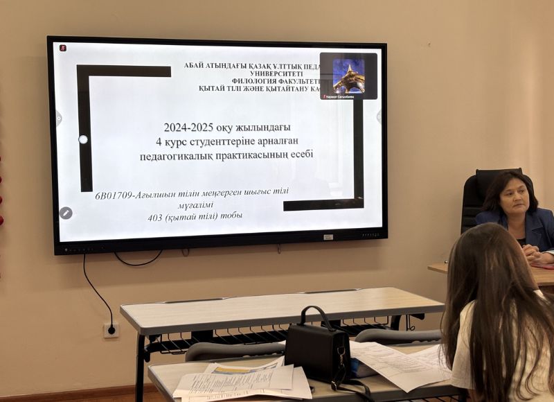Педагогикалық практиканың қорытынды конференциясы Филология факультеті, қытай тілі және қытайтану кафедрасының оқу жоспарына сәйкес «6В01709-ағылшын тілін меңгерген шығыс тілі мұғалімі» мамандығы бойынша білім алатын студенттер 2024-25 оқу жылында 4.11-28.12.2024-13.01-14.04.2025 аралығында «Aisaf-Almaty» гимназиясында, педагогикалық іс-тәжірибеден өтті.