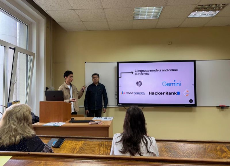 Профессор А.Е. Сагимбаева, профессор Ж.К. Нурбекова, аға оқытушы А.Е. Жаксылыков және оқытушы Н.Е. Артықбаев конференцияда «Контроль знаний по программированию в эпоху GenAI: исследования, вызовы и методология» тақырыбында баяндама жасады. Баяндамада GenAI программалау білімін бақылауды жылдамдатып, тапсырмаларды автоматтандыратыны, кері байланыс арқылы оқыту тиімділігін арттыратыны айтылды. Сонымен қатар, GenAI студенттердің алгоритмдік ойлауын төмендету қаупі бар екендігі сөз болды.