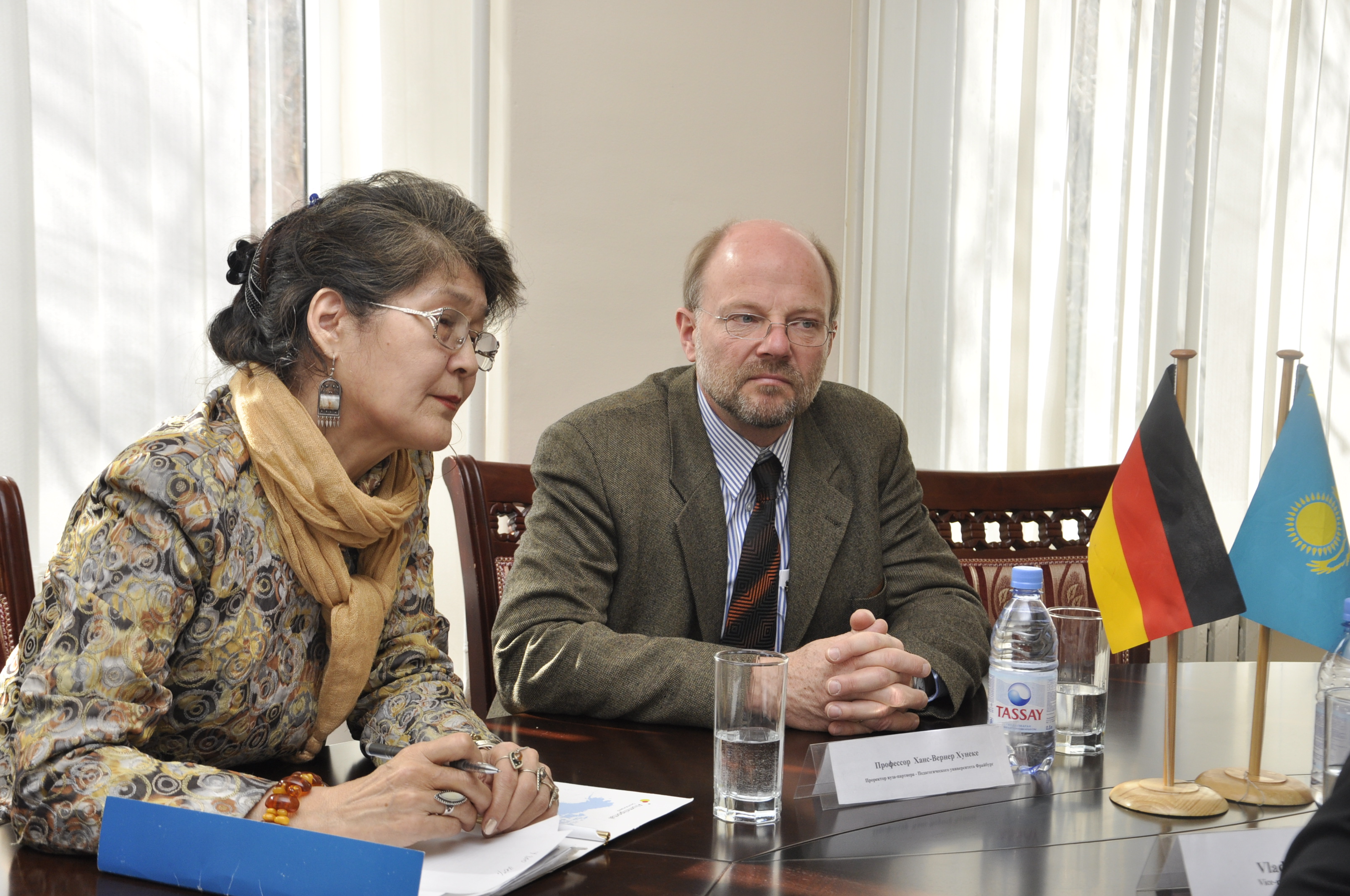 11.04.2011 13.03.2011-20.03.2011 Vice-rector of Freiburg Pedagogical University (Germany) professor Hans- Werner Huneke visited Abai KazNPU. The purpose of the visit is meeting with the academic staff, postgraduate and undergraduate students; development of further bilateral cooperation; discussing the issues of international accreditation of academic programs and opening the German studies Institute in Almaty. Prof. Huneke held master classes/seminars on the following themes: "System of Education in FRG", "Issues of teaching German as a foreign language" for students of philological, psycho-pedagogical, preparation faculties and master and PhD programs Institute.