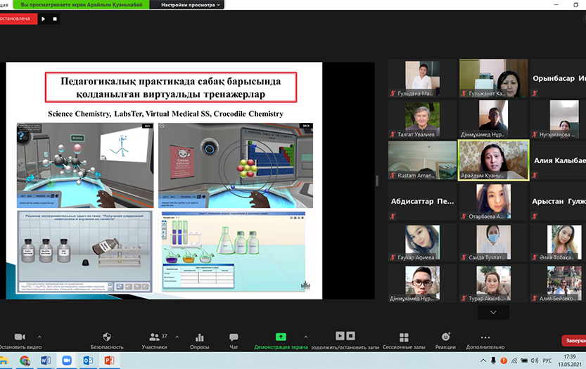 On May 12-13, 2021, a final online conference of the pedagogical practice of 3rd and 4th year students of the specialties 5В011200-Chemistry, 5В011300-Biology, 5В011600-Geography was held. The online conference was attended by 3rd and 4th year students, methodologists-leaders of pedagogical practice, employees of the career development department of the institute. The event was held under the Zoom program.