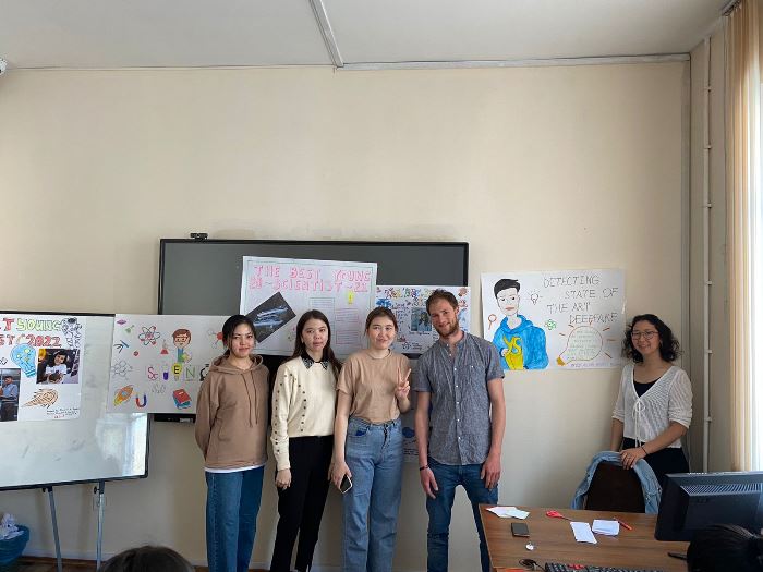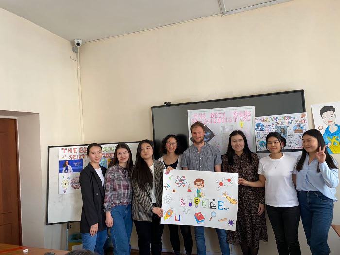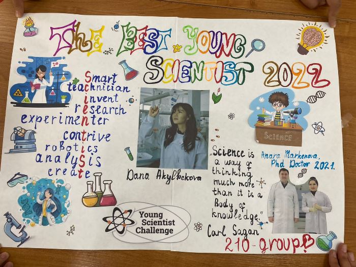 Students of specialty «6В01703 - Foreign language: two foreign languages» (107, 112, 115, 116, 206, 208 groups) and the teacher of the Master of the Department of Foreign Languages, B. B. Kemel organized a creative contest «Poster» on the theme «The Best Young Scientists 2022».