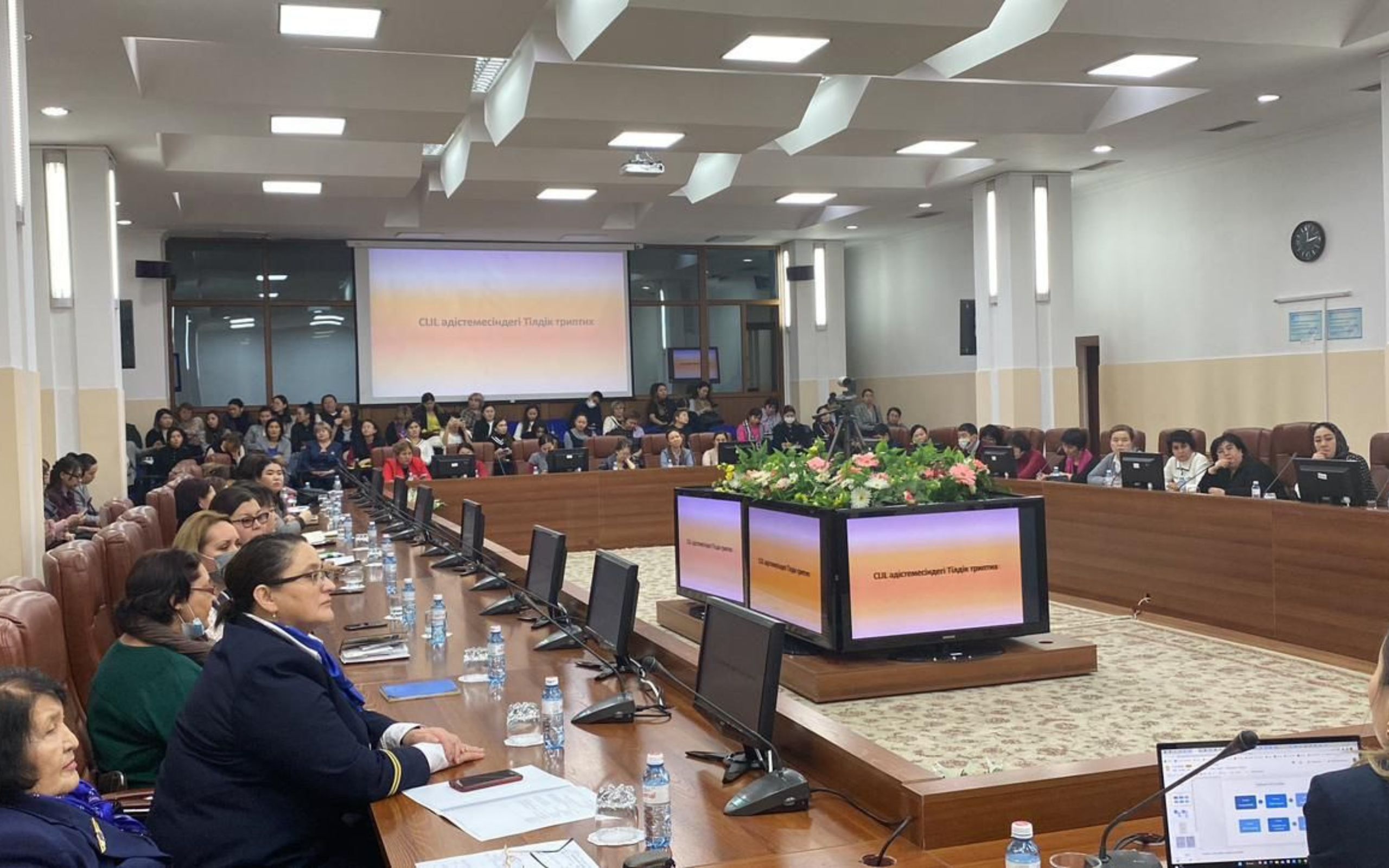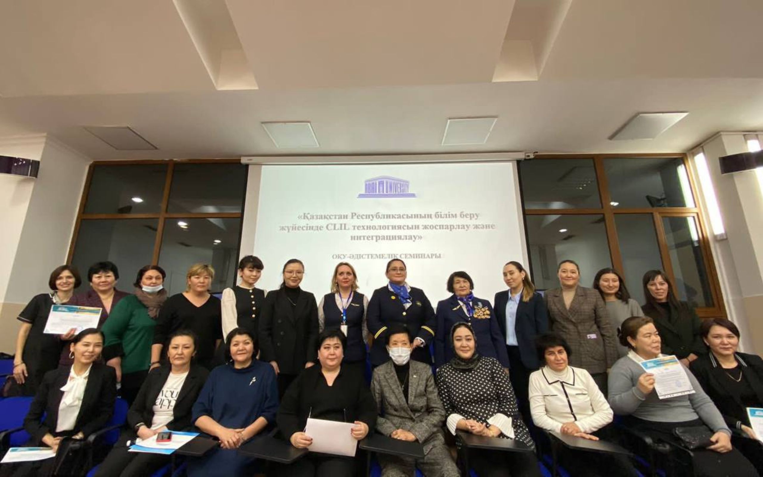 During the seminar they discussed the topical issues and problems of integrating CLIL technology into the educational process. The reports were presented by professor T.T. Ayapova, associated professors Z.A. Kemelbekova and B.E. Bukabaeva, master teachers S.E. Esenaman, K.S. Degtyareva, D.B. Ismailova and M.M. Serikbay. The program of in-service training for CLIL-teachers and the manual «The theory and practice of integrated teaching of the subject and language» were presented to the listeners. Participants highlighted the relevance, timeliness, usefulness and novelty of the seminar.