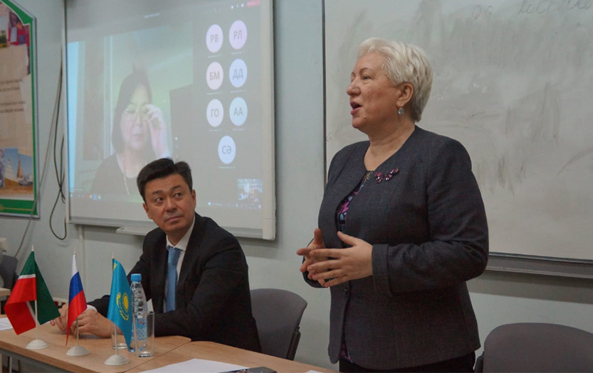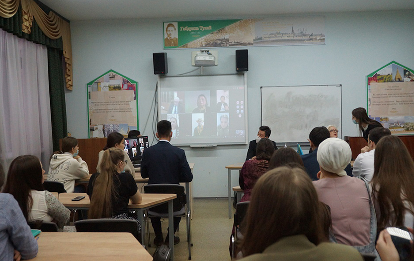 The scientific and educational club «Soztanym» of the Institute of Philology and Multilingual Education of the Abai KazNPU took part in a conference dedicated to the 175th anniversary of Zhambyl Zhabayev, organized on November 30, 2021 by the Consulate General of the Republic of Kazakhstan in Kazan and the Institute of Philology and Intercultural Communication of Kazan Federal University (Tatarstan, Russia). The event was attended by the Consul General of the Republic of Kazakhstan in Kazan Yerlan Iskakov, Representative of the Ministry of Foreign Affairs of the Russian Federation in Kazan, Radik Vakhitov, Director of the Institute of Philosophy, Political Science and Religious Studies, Doctor of Sociology, Professor Serik Seidumanov, Professor of the Department of General Linguistics and Turkology of the Institute of Philology and Intercultural Communication Alfiya Yusupova, Senior lecturer of the Institute of Philology and Multilingual Education Rosa Bakbergenova. They spoke about the life and work of Zhambyl Zhabayev.