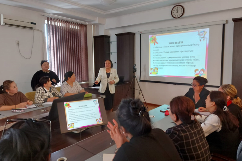 On 18 October 2023, a course "Abaitanu: "Integral Personality" for teachers of Almaty and Almaty region was held in Abai KazNPU. The lecture was delivered by Professor Gulbanu Kosymova, the author of a school textbook on this topic. The aim of the course was to explain to school teachers the concepts included in Abay`s doctrine of "Integral Personality" and to analyse them in connection with the concept of "Tolyk adam" in the works of ancient Turkic and medieval thinkers. The interest of the participants of the event was at a very high level. They asked questions and participated in analysing the phrase "Integral Person" in the legacy of the great Abai. At the end of the course, the listeners were awarded certificates.
