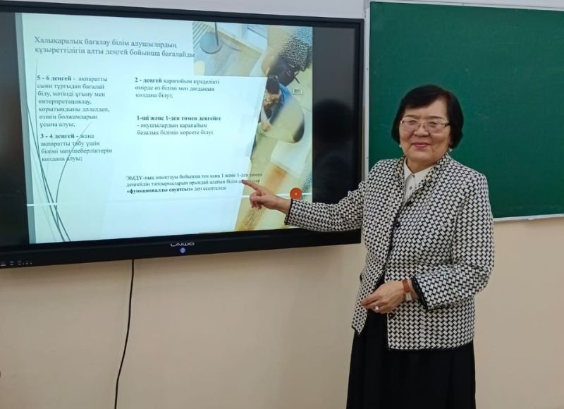 At the seminar, professor of the department, Doctor of Pedagogical Sciences Baltabaeva Zhanalik Klishevna made a presentation on the topic: "Improving text literacy (grade 5)," in which she dwelled on the role of text in improving student literacy and methods of teaching it. The teachers present at the seminar noted the usefulness of the topic under discussion and noted that they use the described methods during the lesson.