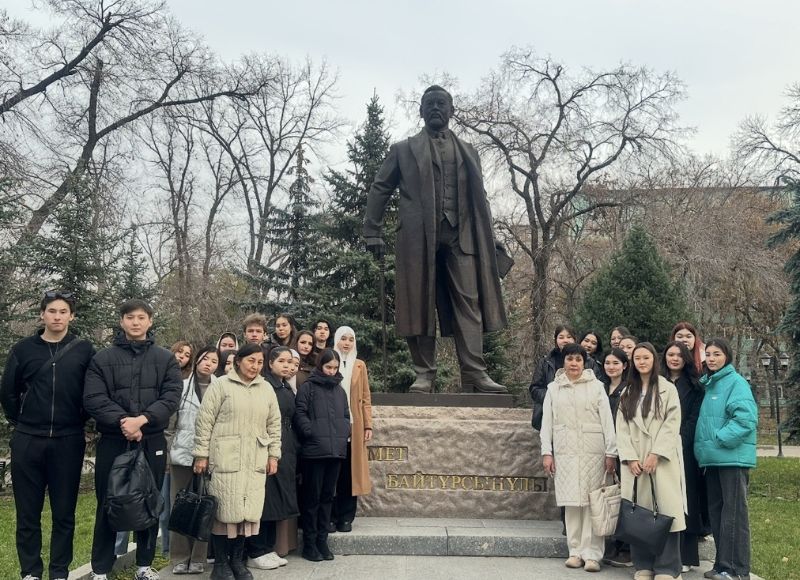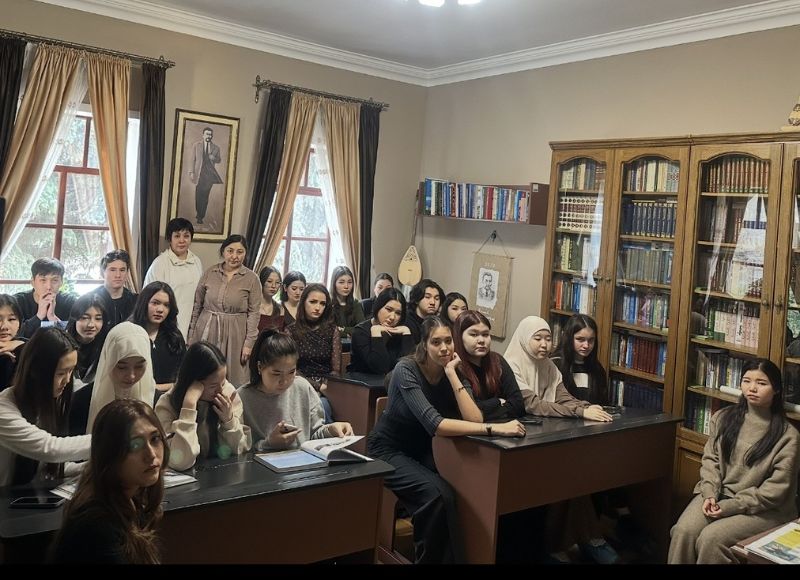 Educational Event at the Akhmet Baitursynuly Museum-House On March 17, 2025, the "Til-Tanym" club held an educational session at the Akhmet Baitursynuly Museum-House. The event was organized by the club`s leaders, M. S. Alibayeva and S. Nurgali, and was attended by students learning Kazakh as a non-native language.