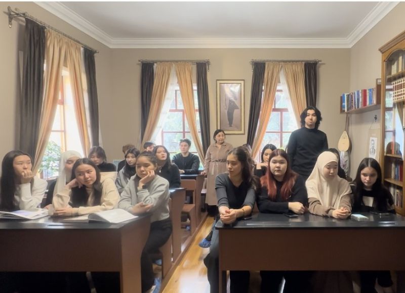 During the session, students gained new insights into the life and works of Akhmet Baitursynuly, deepening their knowledge of the great enlightener`s legacy. Their understanding was assessed through a quiz, and their retention of the presented information was evaluated. Additionally, participants recited Baitursynuly`s poetry from memory and shared their reflections on his contributions to education.