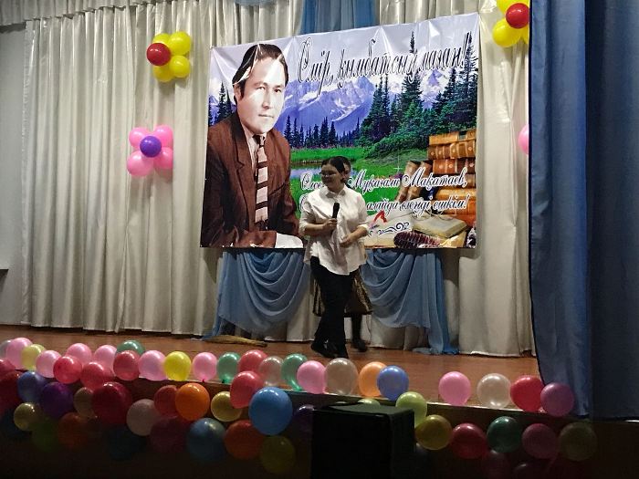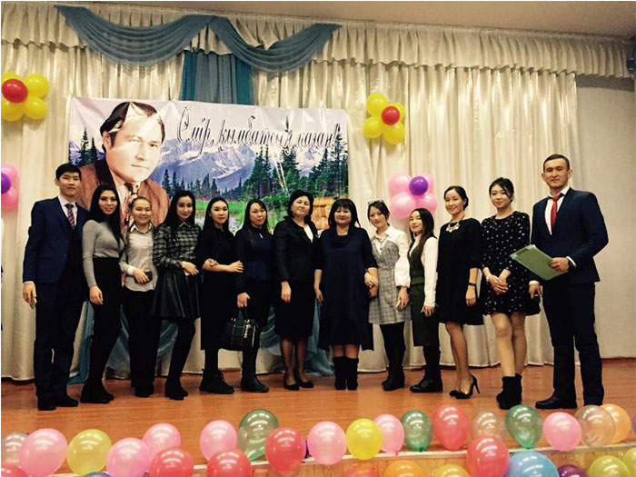 The evening was opened with a speech by Zhanat Dauletbekova, the Head of the Department of theory and methodology of the Kazakh language, doctor of pedagogics, professor and Gulsara Bayedilova, school principal. They congratulated the best students in each nomination and warmly thanked the trainees who had held a high-level poetry week. Methodist of the Institute, candidate of philological sciences, associate professor Saltanat Aibergenova shared with memories of Mukagali Makatayev, expressed her gratitude to the school staff and interns. The literary-cognitive evening ended with the staging about the poet`s work and taking photographs for memory.