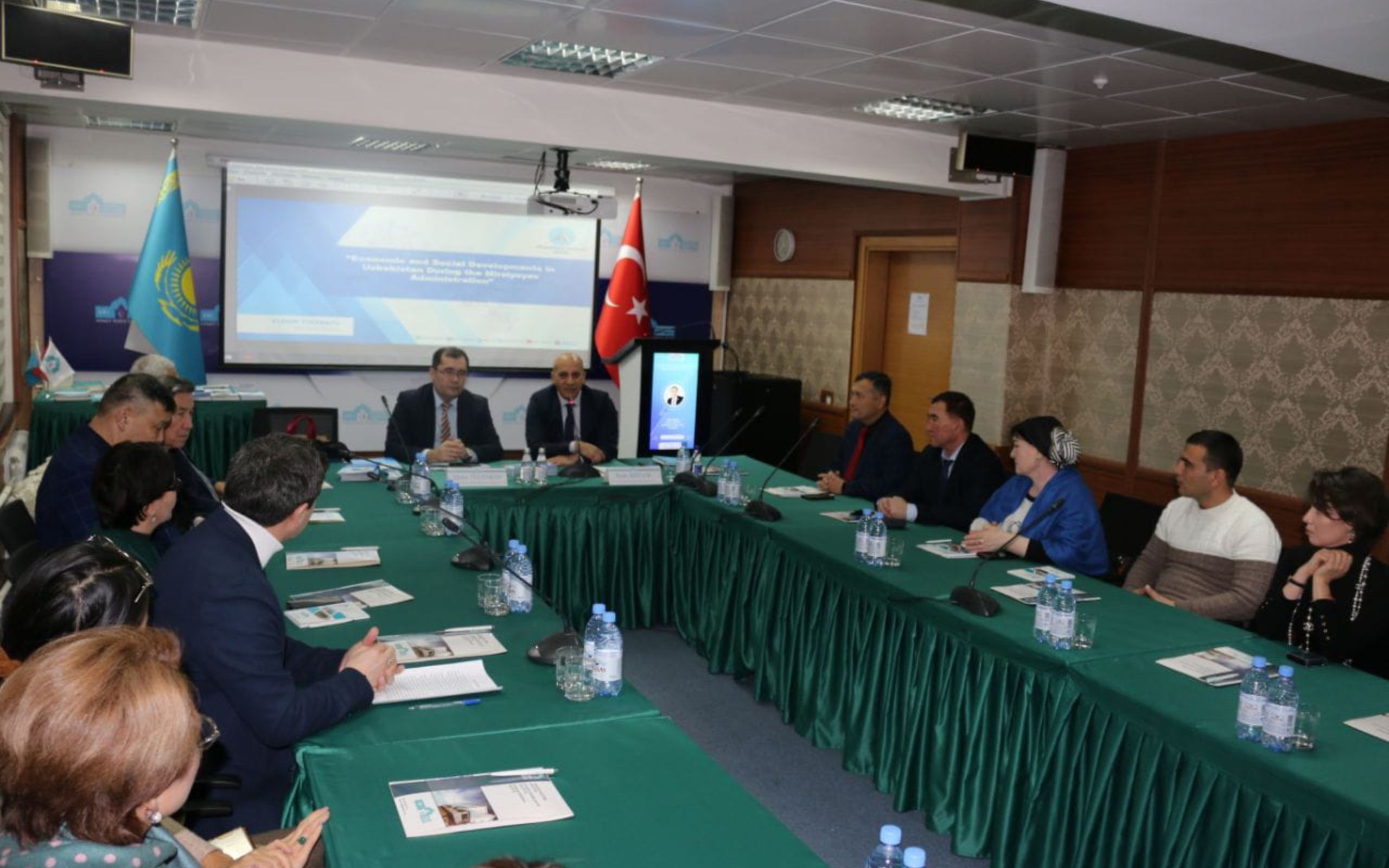 At present 21 teachers are actively pursuing an internship, all of them are assigned to the departments of the university. In particular, guest lecturers from the History Department of the Kokand State Pedagogical Institute, Sh. Kambarova, K. Bakhriddinov and K. Karimov, conducted seminars with students and masters in M01601-History. They took part in the international scientific-practical conference «Second Republic: Lessons of the Past, a Platform for the Future» as well as in the conference «Economic and Social Development of Uzbekistan under Mirziyoyev» held at the Almaty branch of the International Kazakh-Turkish University named after Khoja Ahmed Yassawi. They provided information on reforms undertaken in Uzbekistan, economic indicators achieved in recent years, a favourable investment climate and opportunities created for foreign investors.