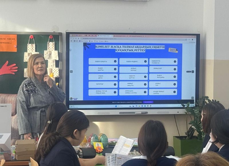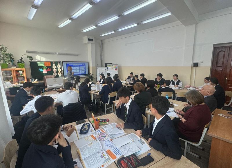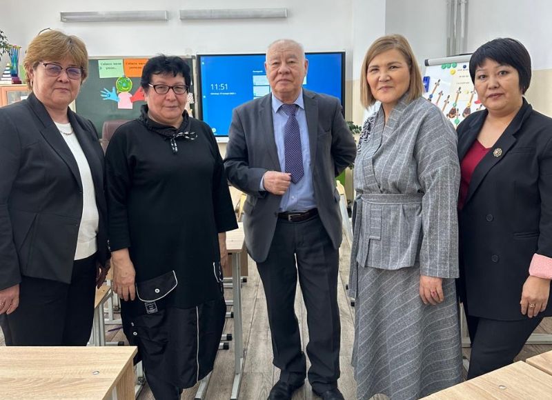 One of the main tasks of the modern educational program is to develop mutual cooperation between universities and schools. To achieve this goal, professors of the "T.S. Sadykov Department of Modern and Contemporary History of Kazakhstan" of the Faculty of History and Law participated in the open lessons of Gymnasium № 159 named after Y. Altynsarin. The master class was conducted by historian, Excellence in Education of the Republic of Kazakhstan, holder of the Y. Altynsarin medal, and master teacher G.S. Asanbekova. The lesson was attended by Doctor of Historical Sciences, Professor G.K. Khalidullin, Doctor of Historical Sciences S.S. Saifulmalikova, Candidate of Historical Sciences G.U. Rasheva, and Candidate of Historical Sciences F.A. Adilova. They exchanged opinions and experiences with schoolteachers on orienting pedagogical education towards unified professional knowledge and discussed the future of education.