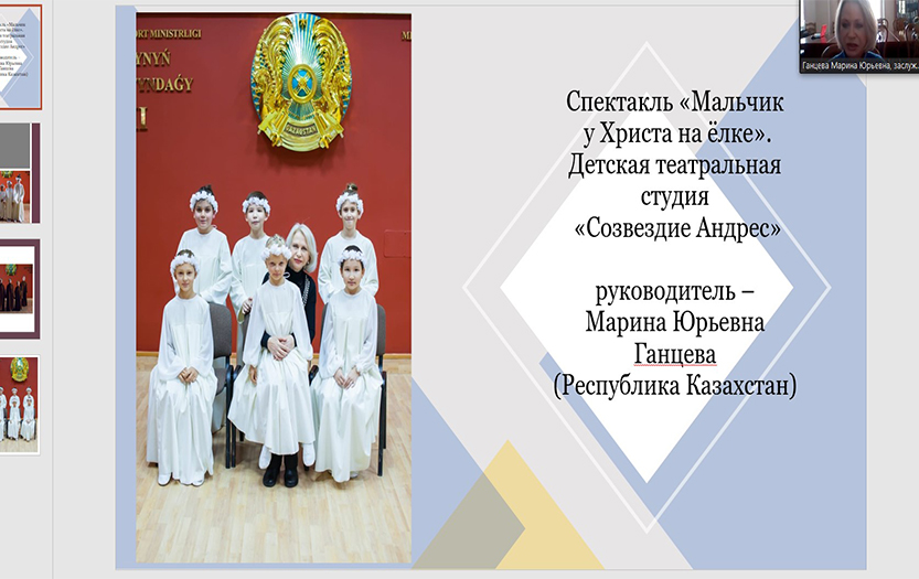 Достоевский мұрасын театр өнерімен шығармашылық тұрғыдан игеру мәселесі Қазақстан Республикасының еңбек сіңірген өнер қайраткері Марина Ганцеваның өнер көрсету тақырыбына айналды. Ол жазушының шығармаларына негізделген М.Лермонтов атындағы Ұлттық орыс драма театрының қойылымдарына қатысқаны туралы айтты. Актриса басқаратын «Созвездие Андрес» («Андрес шоқжұлдызы») балалар театр студиясының оқушылары да ұлы жазушының шығармашылығына тоқталды.