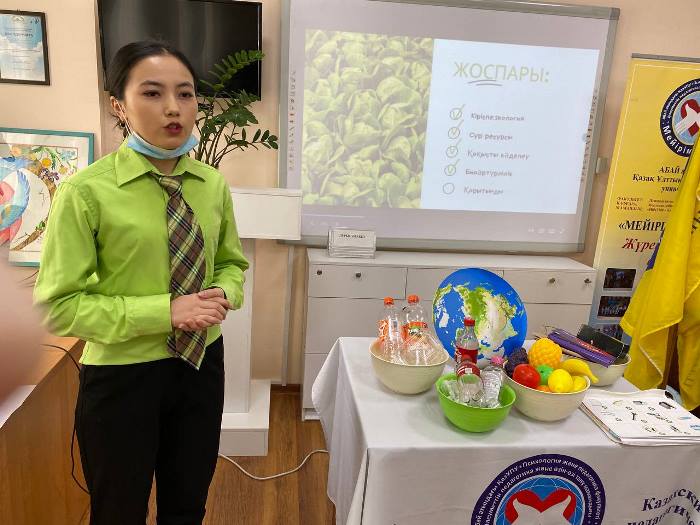 On the eve of the 30th anniversary of Kazakhstan`s independence, on November 18, 2021, at the initiative of the Meyirim club, an educational hour was held at the Abai KazNPU on the topic «Ecology of the planet: yesterday, today, tomorrow». The relevance of the topic is disclosed on the basis of the experience of implementing the project «Environmental Clubs», organized by the club «Meyirim» in schools in Almaty.