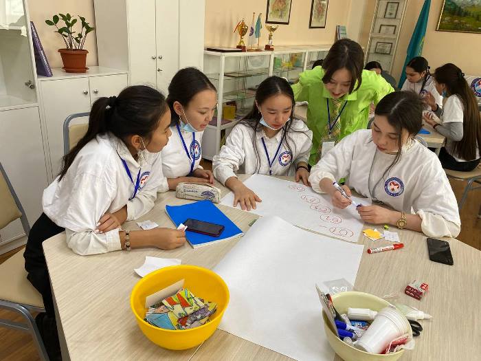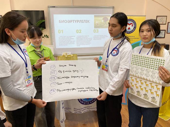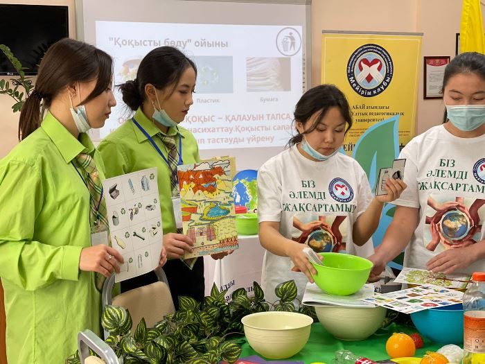 The work on coordinating the training schedule with volunteer students was organized by 3rd-year students of the specialty 6B01801 - «Social pedagogy and self-knowledge» Zhakypbai Balzhan, Isagalieva Zarina, Musanova Aigerim, Zhezbayeva Gulkhanym, Ziyakhanova Ayaulym, Tleuzhan Altynai, who previously participated in the project «Environmental Clubs».