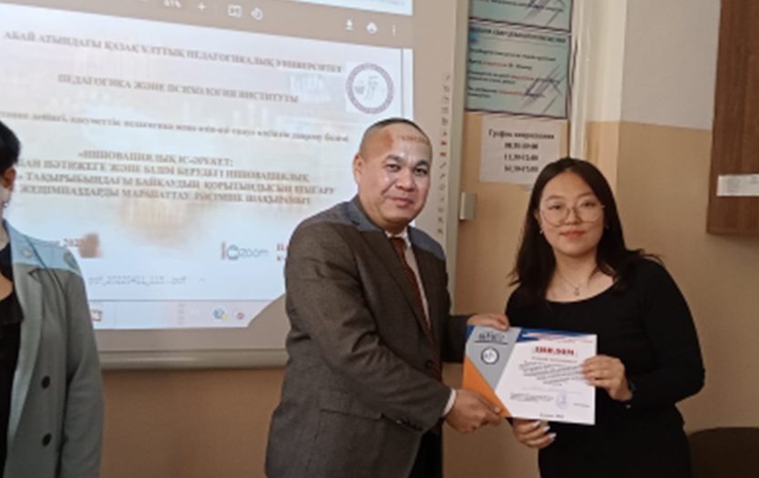 At the end of the event, A.K. Duysenbayev, Head of Department of Science, Monitoring and International Cooperation, and U.K. Kyyakbayeva, Head of Educational Programs for Preschool Education, Social Pedagogy and Self-Knowledge, spoke. They thanked the contest participants for their activity and high knowledge. The winners were awarded diplomas, and all participants received certificates.