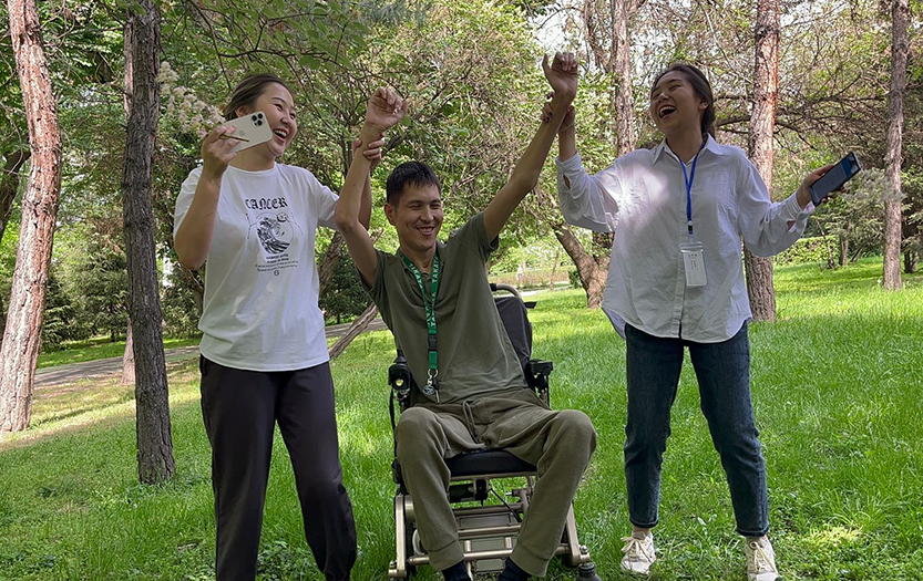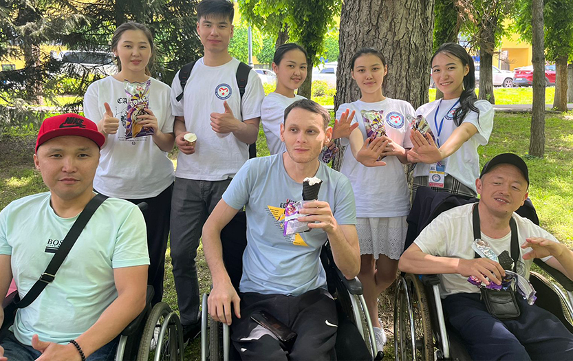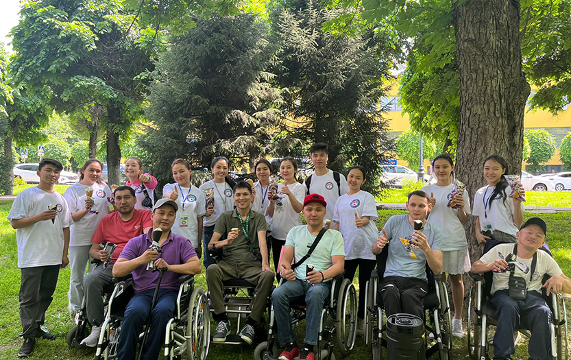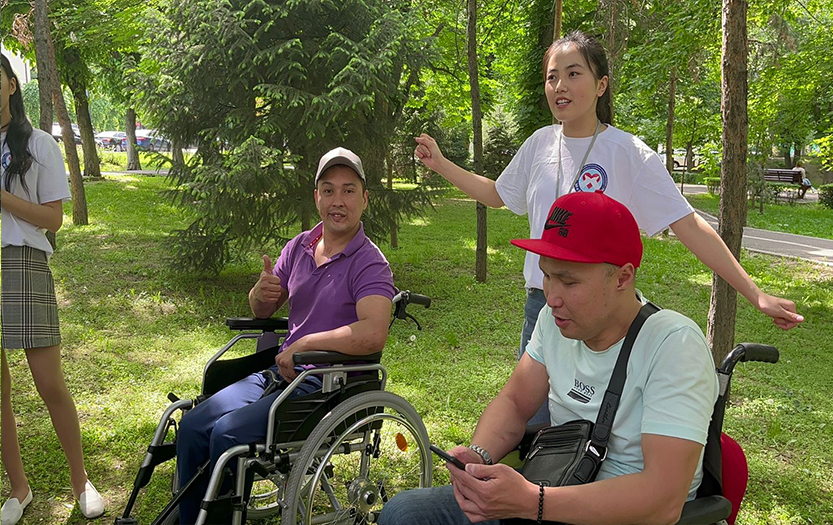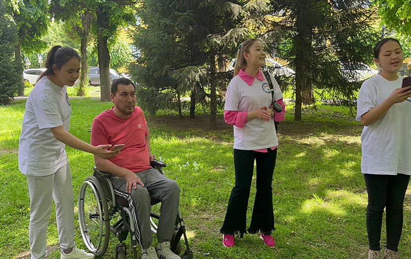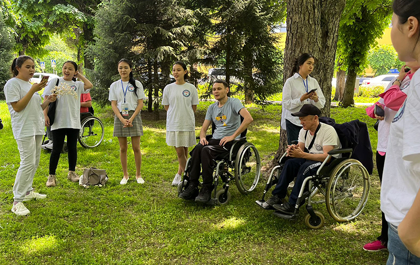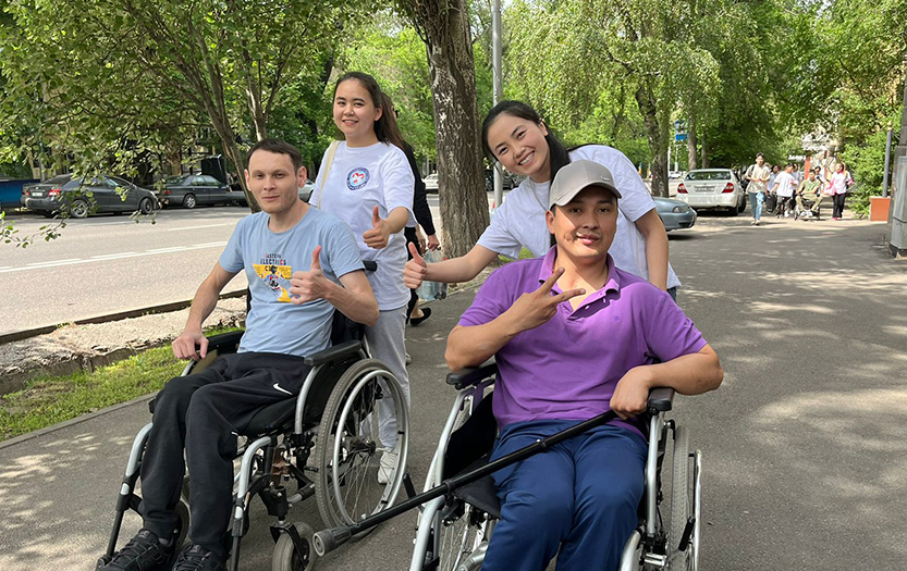 On May 6, 2022, within the social-pedagogical and cultural-educational direction of the club «Meyirim», students volunteers of 1-2 courses of the specialty «6B01801-Social Pedagogy and Self-knowledge» held charity event «Walk in the Park» for people with disabilities of social-rehabilitation centre «ERZI», Almaty.