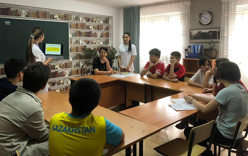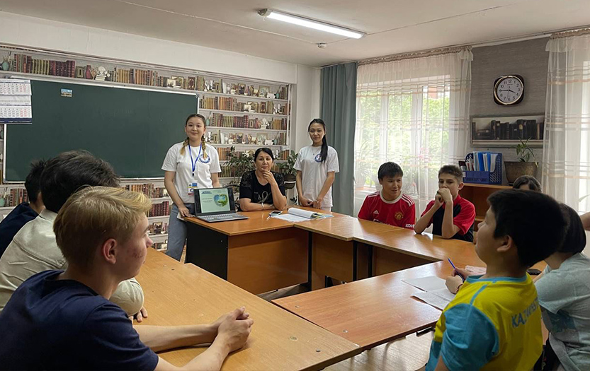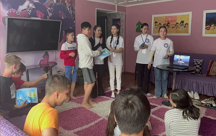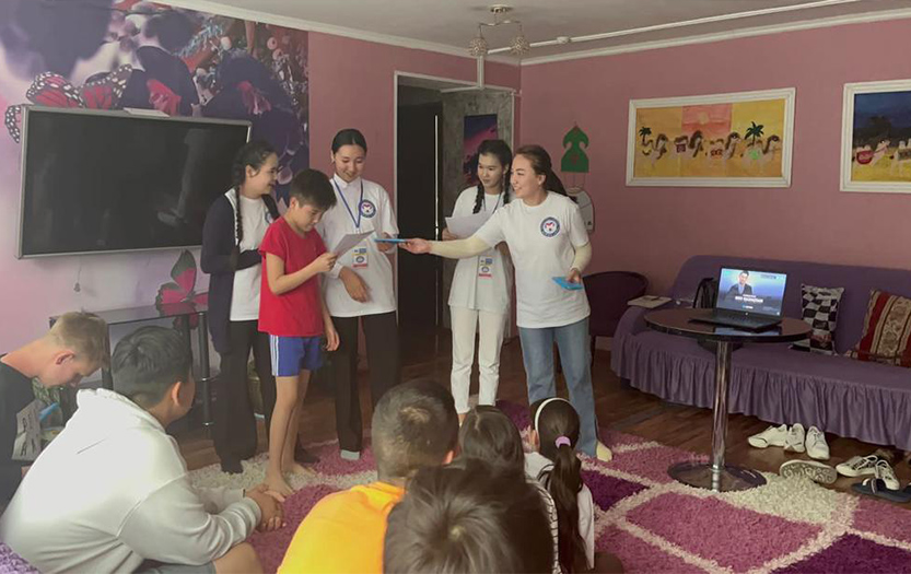 On April 20, 2022, according to the moral, spiritual, cultural and educational directions of the Meirim club under the leadership of Shirinbayeva G.K., 1st-year volunteer students Alpamys N, Akhmetbek A, Ashirbek A, Makhambetova U, Mukhametkazhi A, Saparkhan A, Sparkhan A, specialty 6B01801 - «Social pedagogy and self-knowledge» held a lesson-reflection on the topic: «To hear the quiet voice of conscience...» in Almaty regional orphanage No. 1.