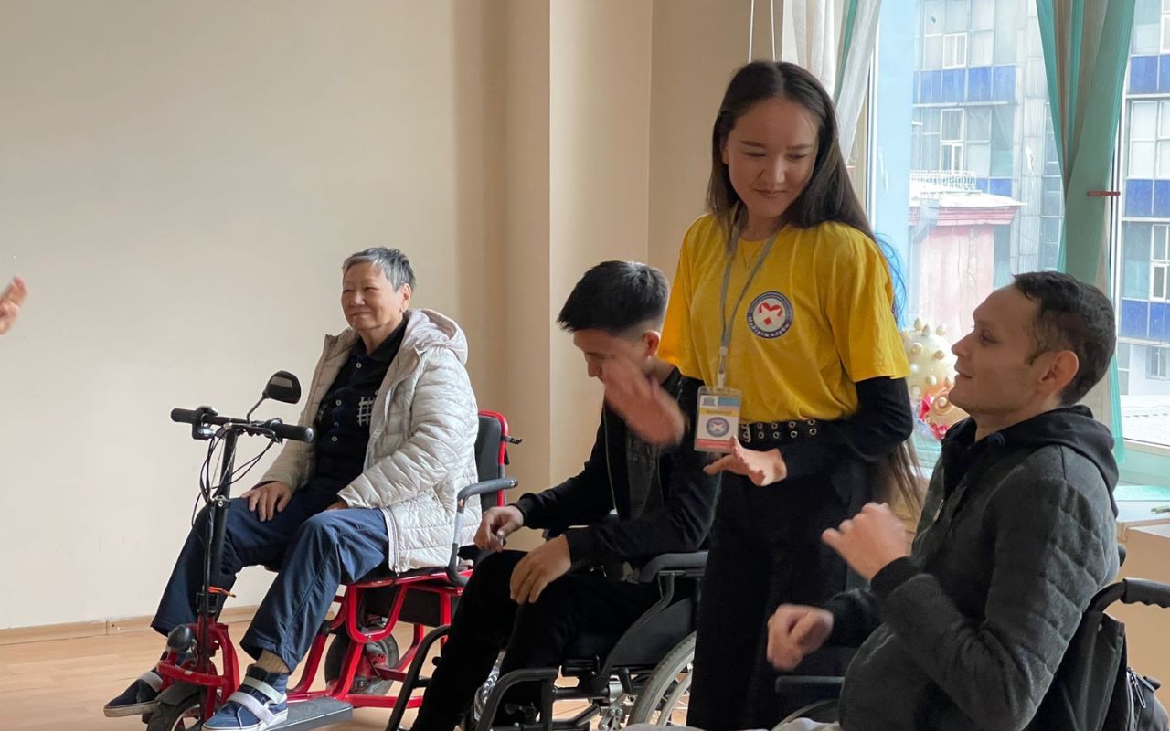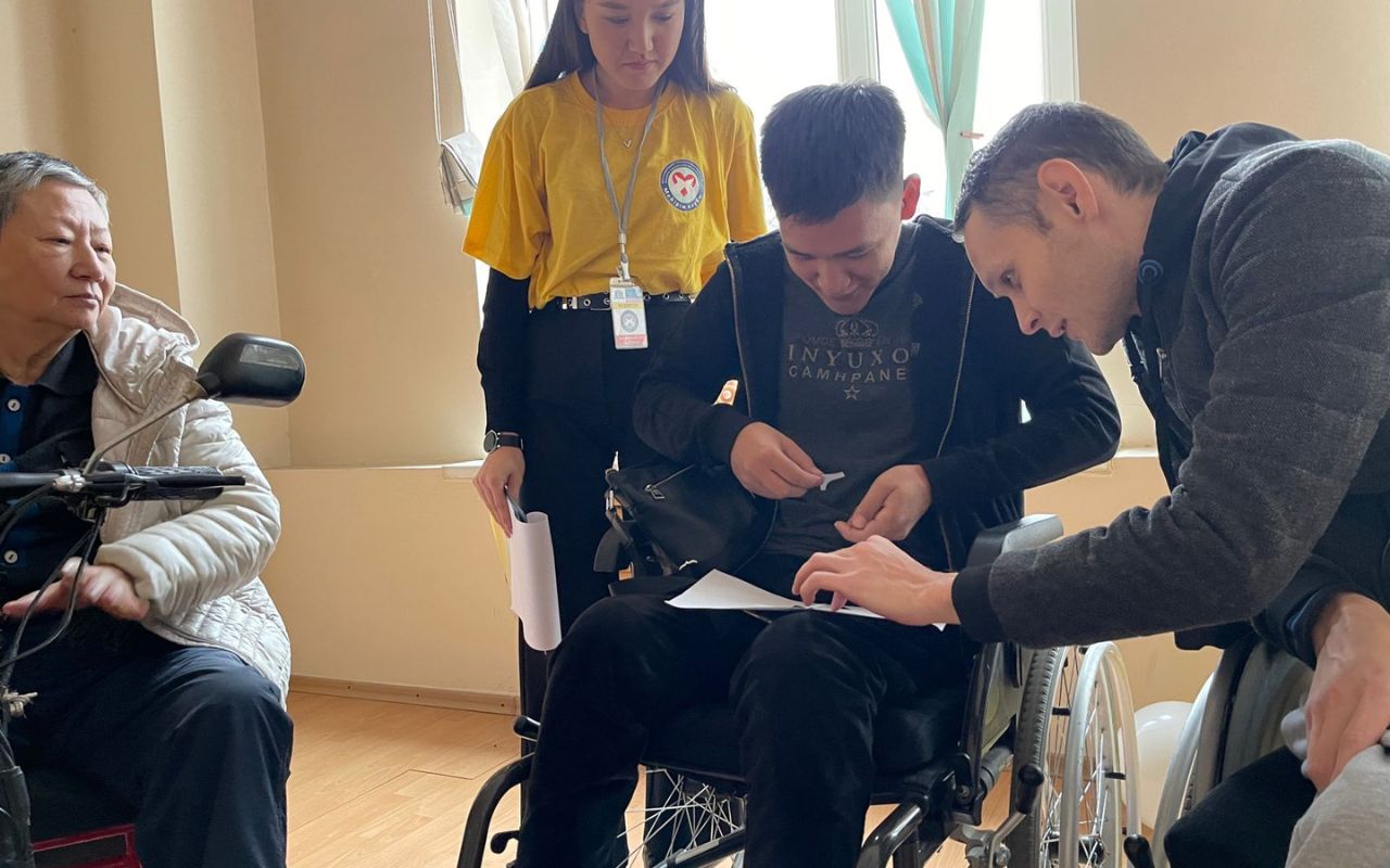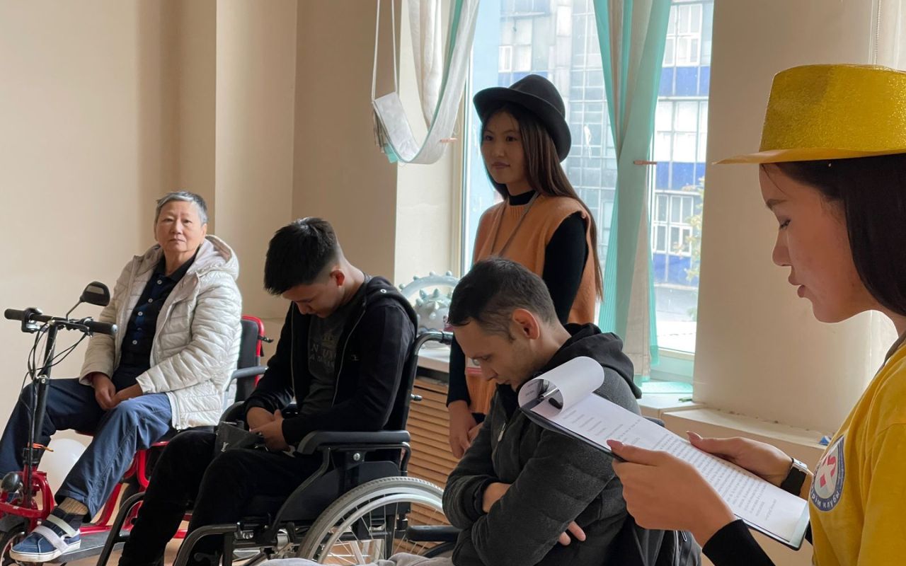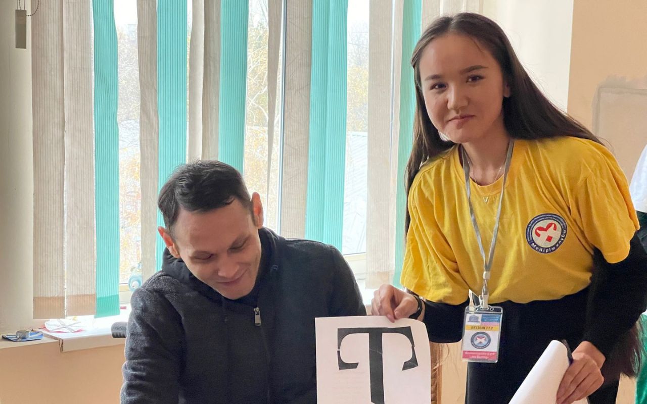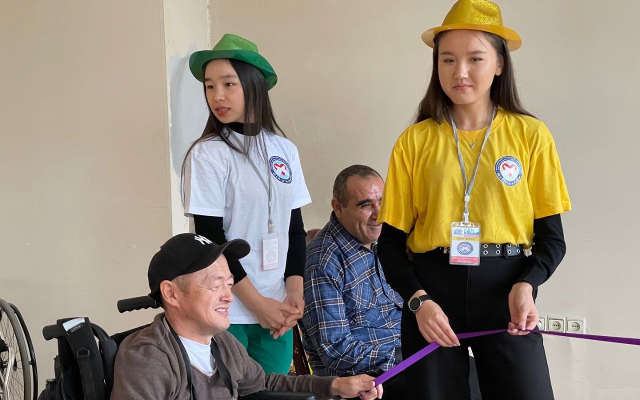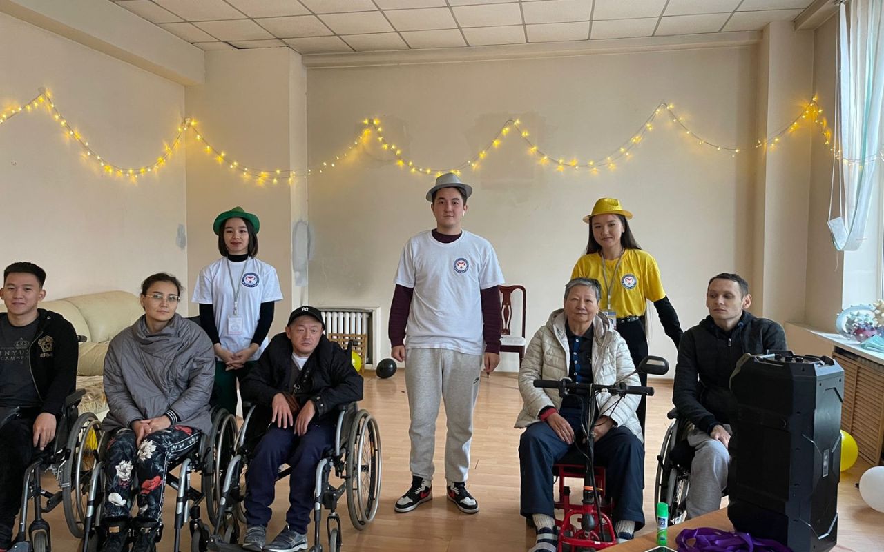 On October 26, 2022, in the socio-pedagogical and animation directions of the Meirim club, under the guidance of associate Professor Shirinbayeva G.K., 3rd-year volunteer students of the specialty «6b01801-Social pedagogy and self-knowledge» I.Moldrakhym, Zh.Zhumadil, Zh.Tolepbergen, R.Yerkinov conducted a conversation-training «Imagination of my childhood» for people with disabilities of the social rehabilitation center «YERZI» in Almaty.