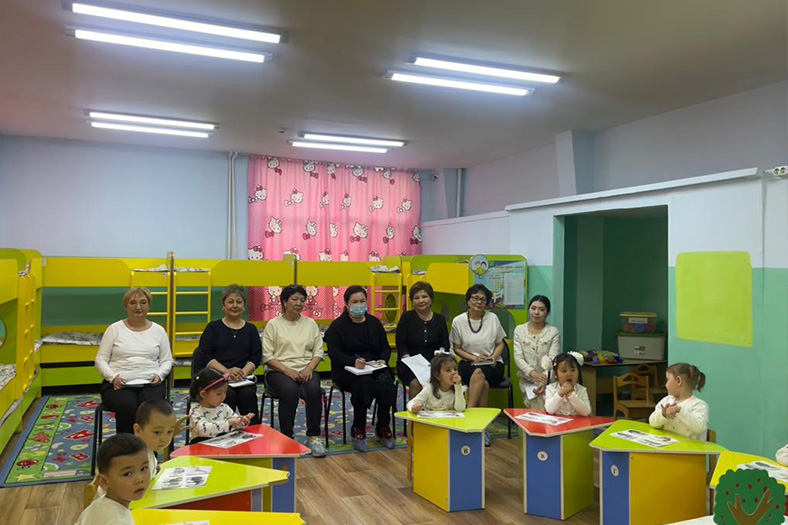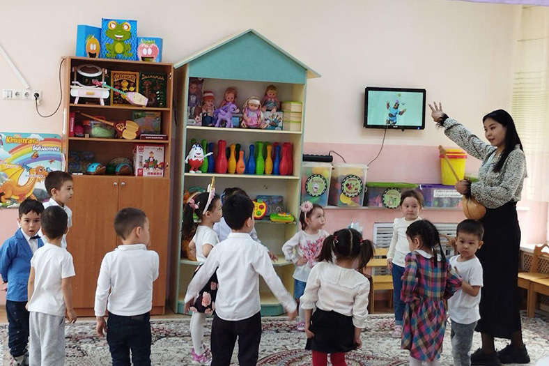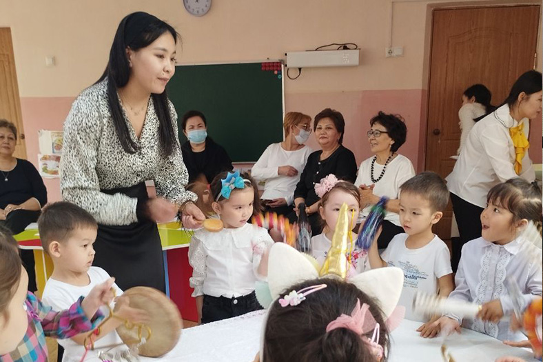 On April 11, 2023, fourth year students of the educational program "6B012-preschool training and education" of Department of Preschool Education and Social Pedagogy of Institute of Pedagogy and Psychology held open classes in the kindergarten № 96 of Medeu district of Almaty. The event was held in the framework of the socio-cultural project "Development of self-actualization of older children in the process of familiarization with the cultural objects of Almaty". The aim was to propagate national values, to increase cognitive activity of children, to broaden their outlook, world outlook, vocabulary, to improve their understanding of the environment and to enhance their aspiration and enthusiasm for the theme of the project.