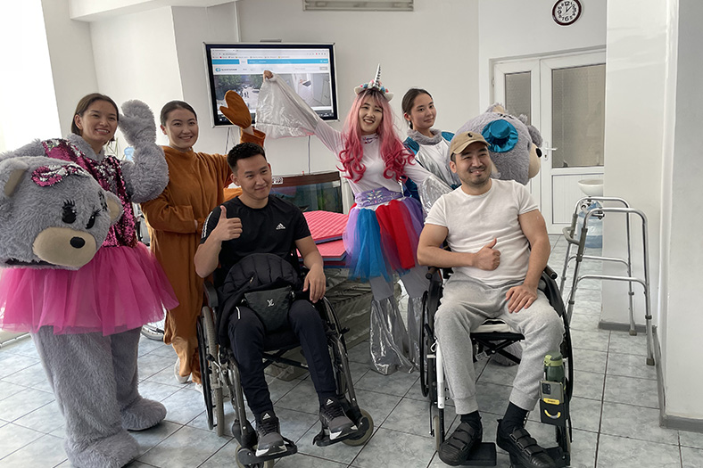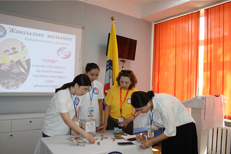 From March 13 to May 03, 2023, with the support of the Department of Educational, Social Work and Youth Policy under the leadership of G.Shirinbaeva, volunteer students of the Meirim club, specialty "6B01801-Social Pedagogy and Self-knowledge" conducted an online and offline charity event "The Road of Good" for people with disabilities social rehabilitation center "YERZI", Almaty. The purpose of the event is social and pedagogical support and financial assistance to raise funds for the purchase of a mat and a simulator necessary for people with disabilities.