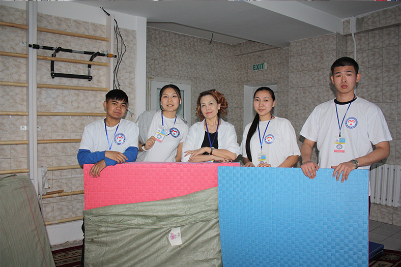 From March 29 to May 03, 40 pieces of Tatami mats and walking simulator simulators "Shagun" were purchased for about 623 thousand tenge collected as part of the campaign and were solemnly handed over to the social rehabilitation center "YERZI" in the animator direction of the Meirim club in the complex of the program of correctional and developmental games on the site.