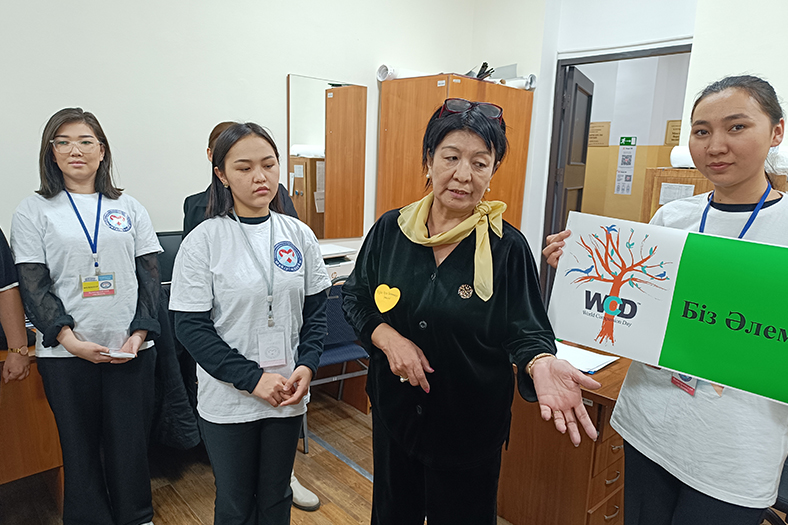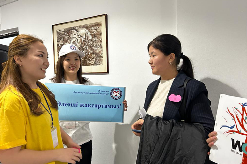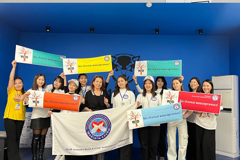 The event was held with the assistance of the Department of Educational, Social Work and Youth Policy, with the participation of the Deputy Director for Educational Work of the Institute of Pedagogy and Psychology Saule Sholtaeva, Head of the Department of Preschool Education and Social Pedagogy Ulbolsyn Kiyakbaeva. In order to spread the ideas of humanism, volunteer students conducted a blitz survey «What should we do to make the world a better place?», «Why do we need mercy?», «Your contribution to selfless service to society?», which united the entire teaching staff and the student youth of all the institutes of our university.