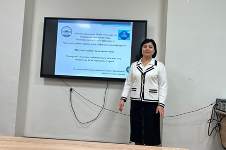 In the framework of the memorandum of cooperation between Abai KazNPU and Nukus State Pedagogical Institute named after Azhiniyaz (Uzbekistan) signed on March 19, 2021, from November 29 to December 1, 2023, Ainagul Bekimbetova, Head of the Department of Preschool Education and Defectology of NSPI named after Azhiniyaz, and Gulbanu Zhumabayeva, Senior Lecturer, visited the Department of Preschool Education and Social Pedagogy of the Institute of Pedagogy and Psychology on academic mobility.