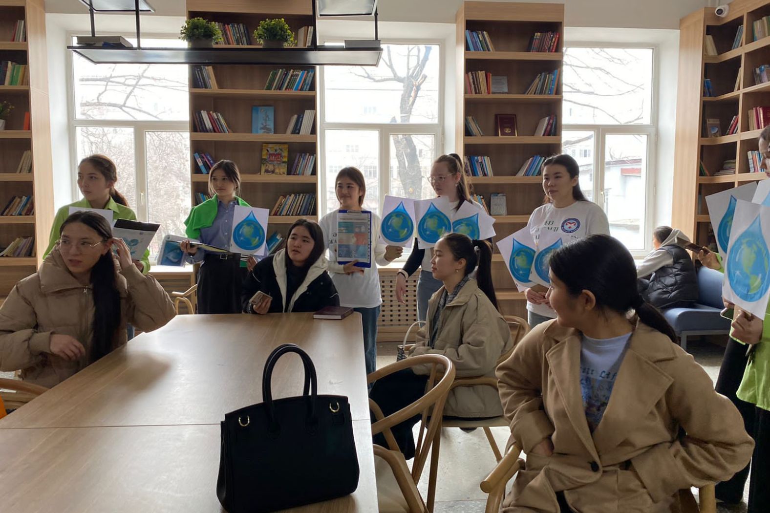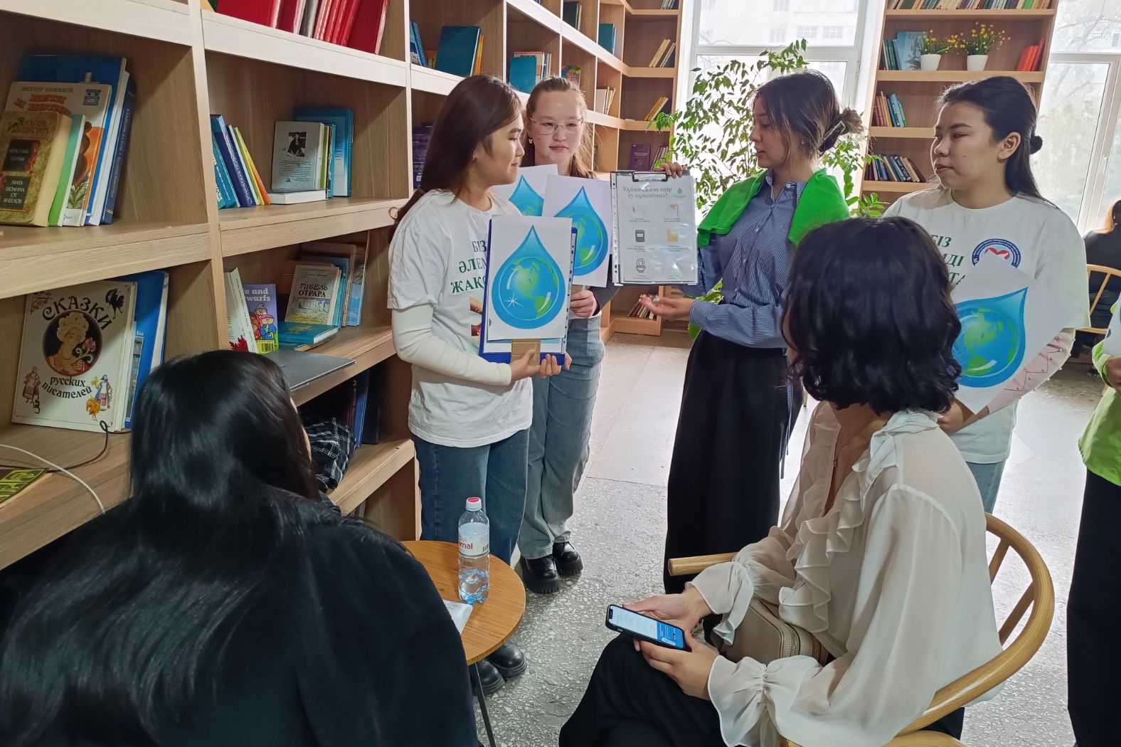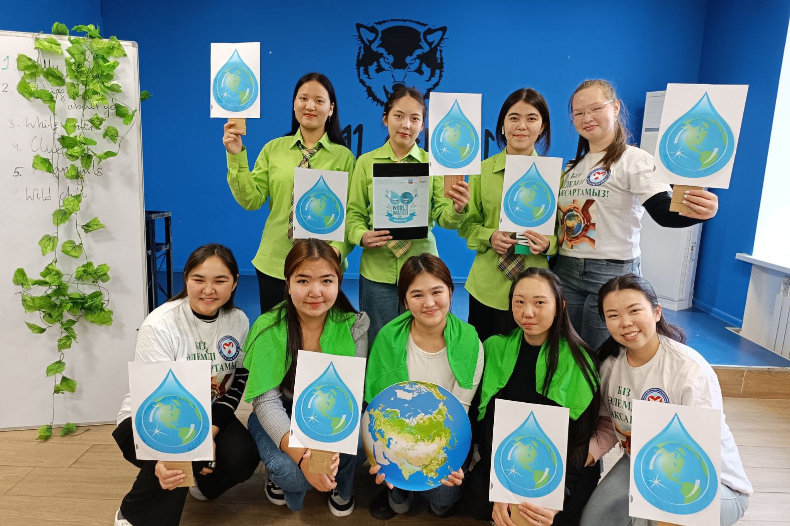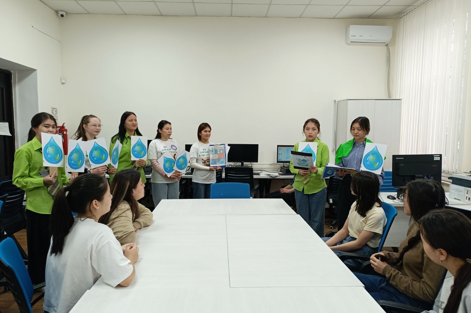 On the eve of the "World Water Day" on March 20, 2024, in the environmental areas of the Meirim club, with the assistance of the Department of Educational, Social Work and Youth Policy, under the leadership of Associate Professor Shirinbaeva Gulbakhira, volunteer students Ergesheva Alsu, Koshanai Merey, Ziyabek Tansholpan, Duzbayeva Nurayim, Mukan Zhamila, Mukhametrahim Eldan, Kalmaganbetov Aray, Nurbakytkyzy Janel, Rakhadova Akbota, Abdullayeva Amina held an environmental hour on the theme "Water cycle: yesterday, today, tomorrow".