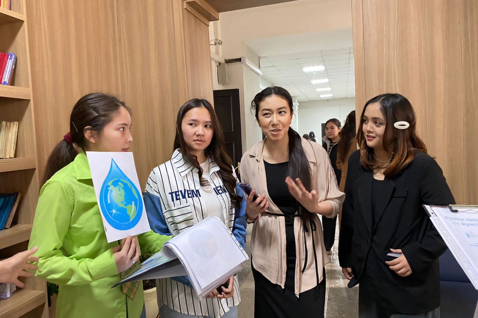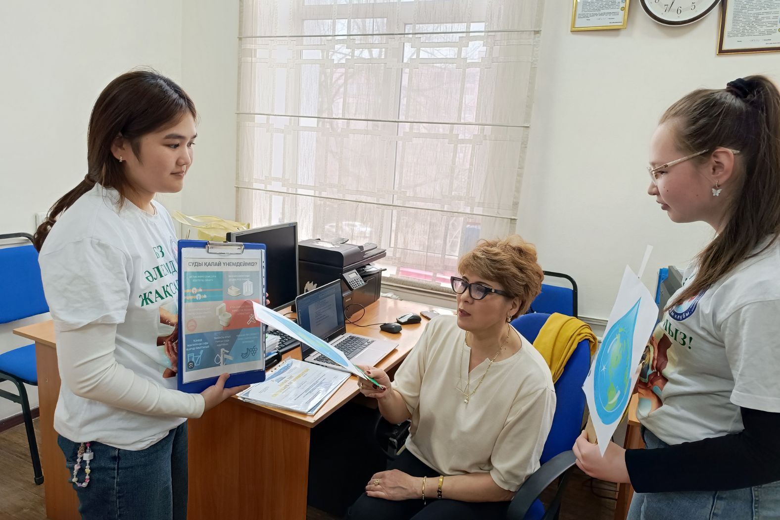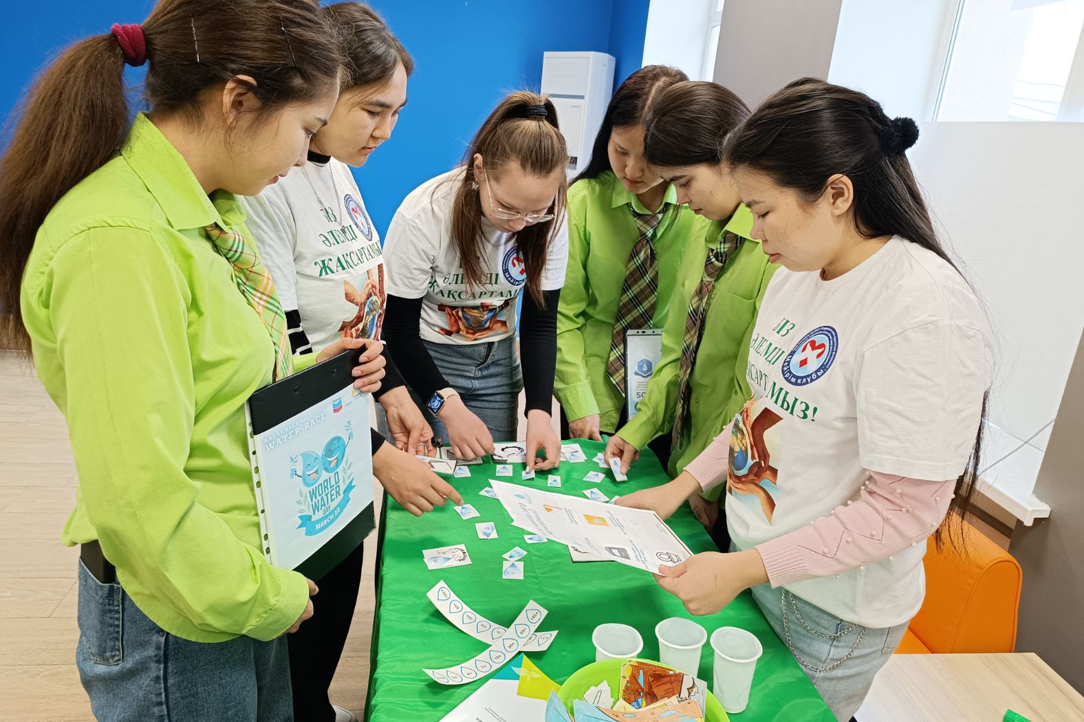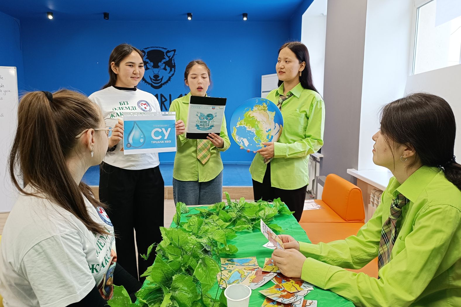 On the eve of the "World Water Day" on March 20, 2024, in the environmental areas of the Meirim club, with the assistance of the Department of Educational, Social Work and Youth Policy, under the leadership of Associate Professor Shirinbaeva Gulbakhira, volunteer students Ergesheva Alsu, Koshanai Merey, Ziyabek Tansholpan, Duzbayeva Nurayim, Mukan Zhamila, Mukhametrahim Eldan, Kalmaganbetov Aray, Nurbakytkyzy Janel, Rakhadova Akbota, Abdullayeva Amina held an environmental hour on the theme "Water cycle: yesterday, today, tomorrow".