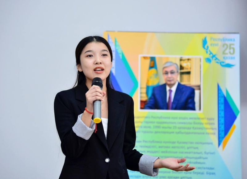 The event was organized to promote the cultural musical heritage of the country through patriotic songs of Kazakhstan, develop students` sense of patriotism, nurture their love for the Motherland, develop national identity, strengthen the cultural and spiritual values of the country, preserve and modernize the national culture and traditions.