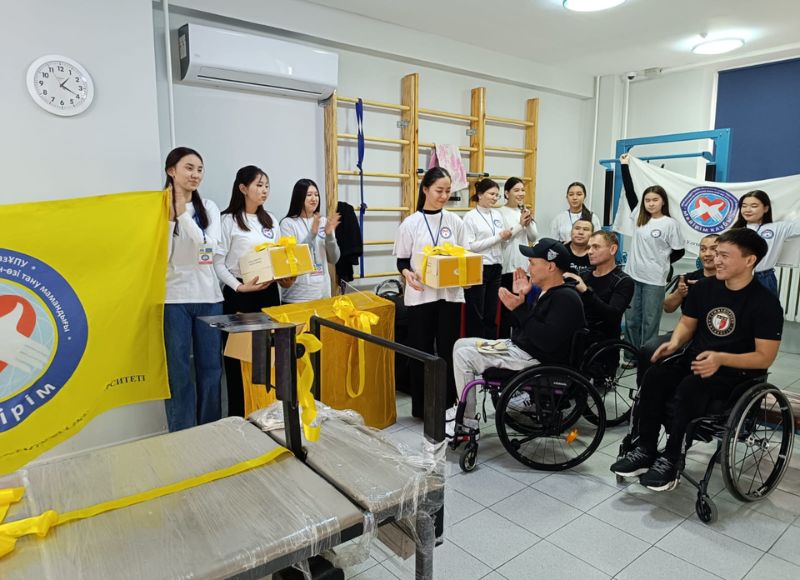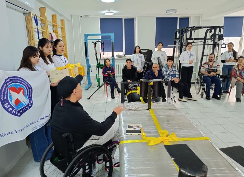During the events, about 405,200 thousand tenge were purchased for the amount collected within the framework of the actions (simulator for hip joint muscles) and an exercise bike Rider (for therapy of musculoskeletal functions). They were solemnly presented with a birthday cake to the YERZI social rehabilitation center, accompanied by kind songs and poems in the complex of the cultural and creative therapy program. At the stage of reflexive analysis, people with disabilities sincerely thanked caring citizens for their care and attention.