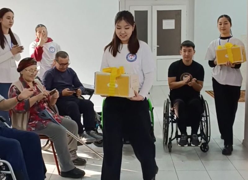 A solemn event dedicated to the "International Day of the Disabled" Оn December 3, 2024, on the eve of the "International Day of People with Disabilities" with the support of the Department of Social and Youth Policy, under the leadership of Associate Professor Shirinbaeva Gulbakhira in the cultural and educational direction of the Meirim club, volunteer students of the specialty "6B01801-Social Pedagogy" organized a charity event for people with disabilities of the YERZI social rehabilitation center in Almaty.
