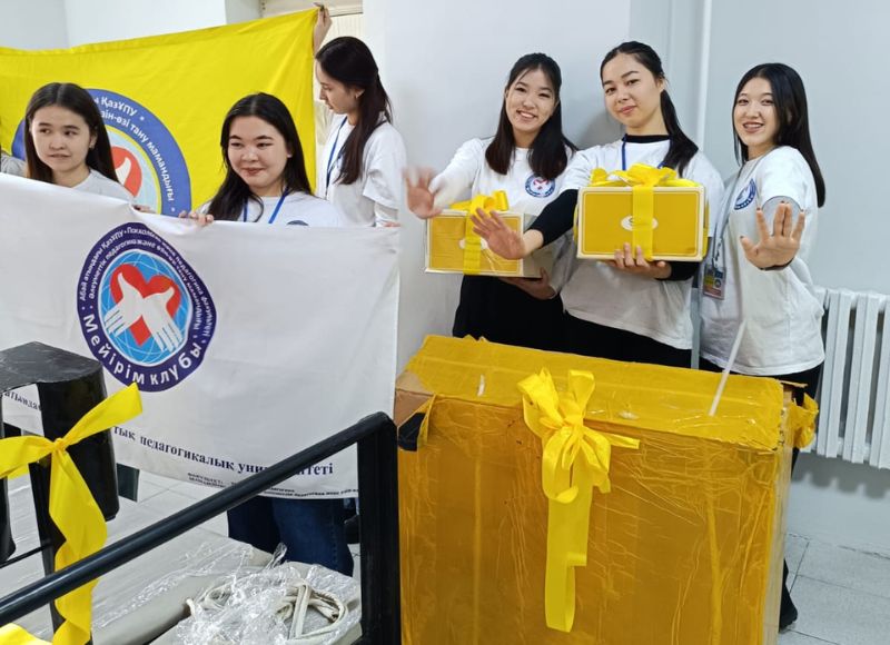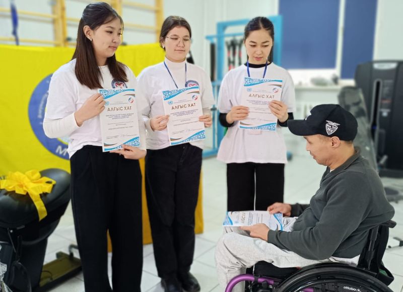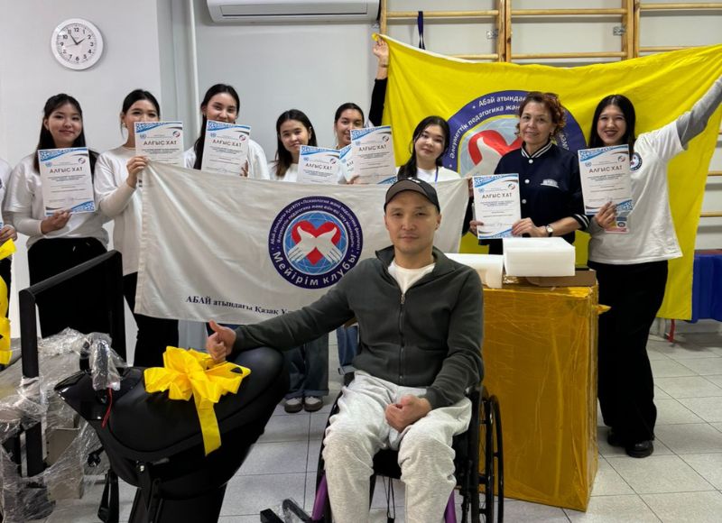 At the end of the event, a ceremony was held to award a special Letter of Thanks from the president of the NGO "Association of the Disabled "YERZI" Yerbol Igembergenov to volunteer students of the 1st year of the specialty "6B01801-Social Pedagogy" of the Faculty of Pedagogy and Psychology, who were active on a regular basis in volunteer activities.