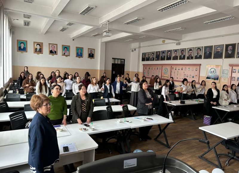 The guests of the event were the head of the department of preschool education and social pedagogy, candidate of pedagogical sciences, professor Ulbosyn Kyyakbaeva, senior teacher Dariga Azimbaeva, as well as Kaskelen Humanitarian and Technical College candidate of pedagogical sciences, professor Zagilya Suleimenova, candidate of pedagogical sciences Maya Dzhunusova, senior teacher from the department of primary education senior teacher Bekbaeva Mariyam.
