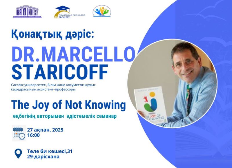 A foreign scientist held a methodological seminar February 27, 2025 at the Department of Preschool Education and Social Pedagogy for undergraduates and doctoral students with a guest lecture on "The Joy of Not Knowing. Why it`s so good to not know" was delivered by Marcelo Staricoff, Professor of the Department of Education and Social Work, Assistant Professor of Primary Education at the University of Sussex.