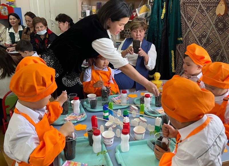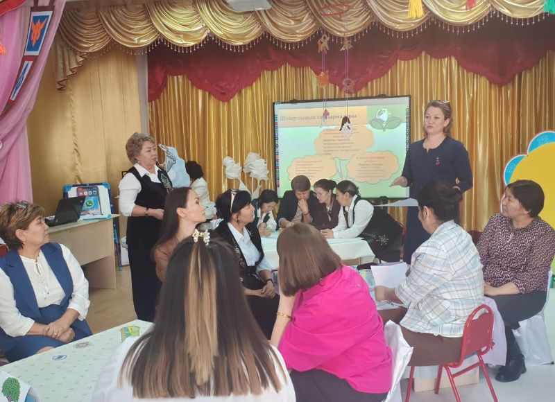 Methodologist of the Zhambyl district methodological center, Atirkul Kozhakhmetova, presented the best practices in preschool education and training in the district and discussed new developments in the field of environmental education.