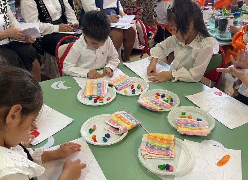 Educators from preschool organizations in the Zhambyl district shared their experiences. Teacher of the preparatory group "Balbobek" Saltanat Taylakbayeva, teacher of the senior group "Kunshuak" Zhansulu Toyanova, and head of the "Kunshuak" kindergarten Dilda Turlybekova proposed practical methods for environmental education.