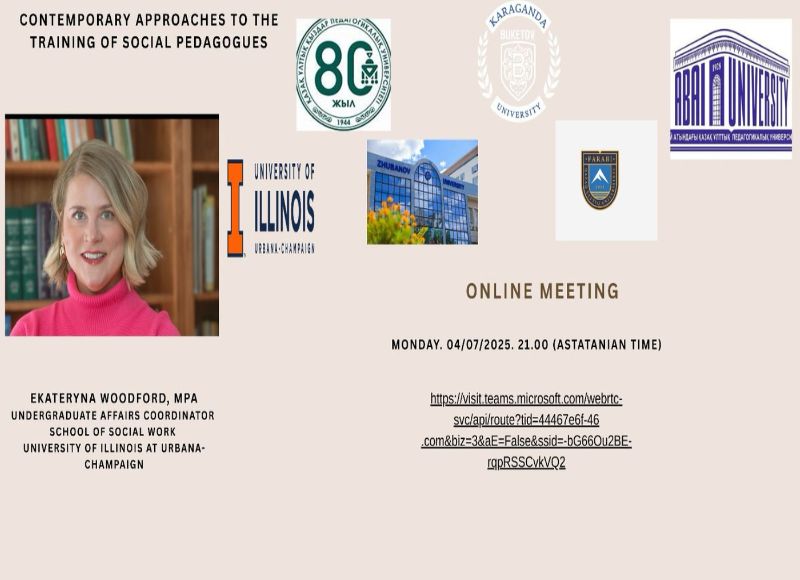 The academic coordinator of the meeting was Professor Meiramgul Bulakbayeva, Candidate of Pedagogical Sciences, from Kazakh National Women`s Teacher Training University. She is currently undergoing a scientific internship at the University of Illinois at Urbana-Champaign (USA) through the international Bolashak scholarship program. Initiated by Professor Bulakbayeva, this event served as a significant platform for deepening international academic collaboration and exchanging modern practices in the field of socio-pedagogical education.