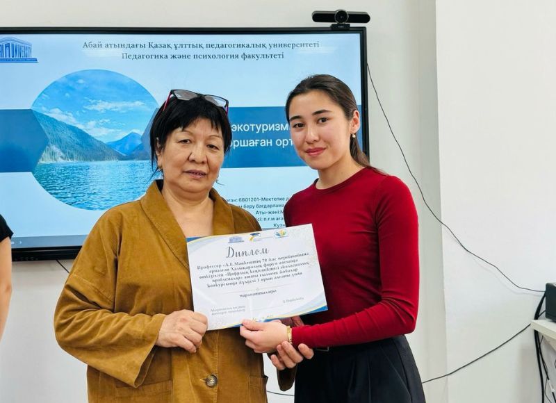 The results of the competition of scientific projects on the topic "Environmental problems in the digital space" On April 8, 2025, within the framework of the International Forum dedicated to the 70th anniversary of Professor A.E. Mankesh, a scientific project competition titled "Environmental Problems in the Digital Space" was held at the Faculty of Pedagogy and Psychology. The event was organized by Acting Associate Professor of the Department of Preschool Education and Social Pedagogy, G.T. Abilbakiyeva.