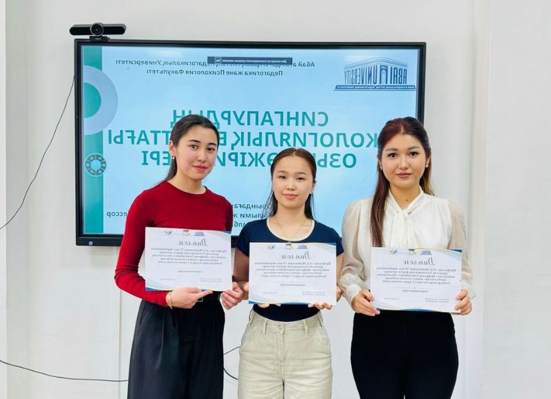 1st place - Aida Orazaliqyzy Alpysova (Scientific advisor: PhD, Acting Associate Professor G.T. Abilbakiyeva). 2nd place - Aidana Aydynqyzy Marat (Scientific advisor: Master of Pedagogical Sciences, Senior Lecturer D.K. Azimbayeva). 3rd place - Ayanat Bolatqyzy Nagymettula (Scientific advisor: PhD, Acting Associate Professor S.Zh. Erkebayeva).