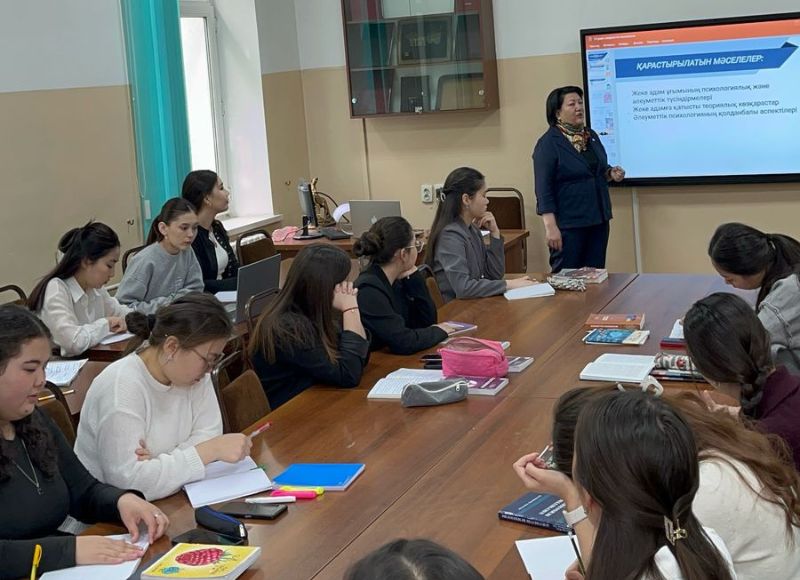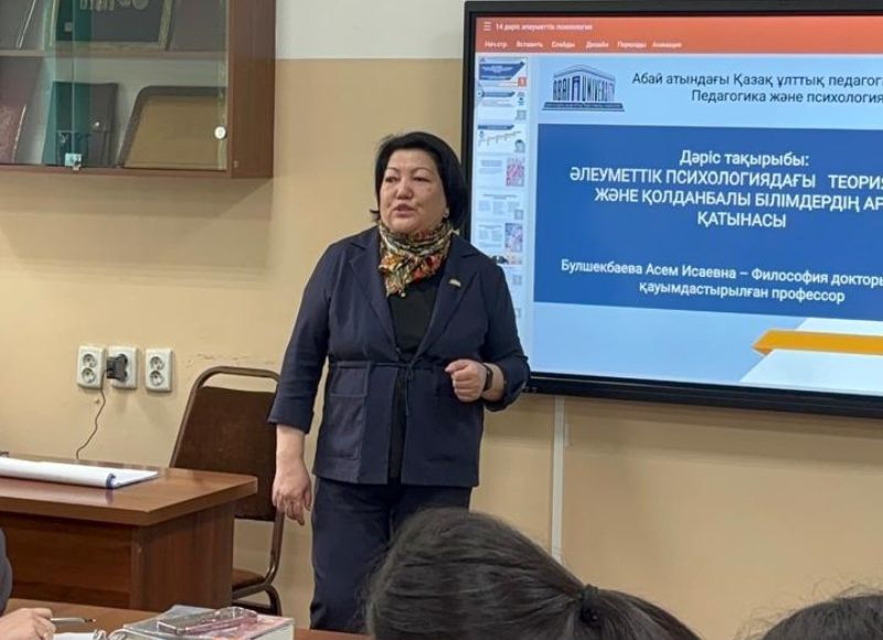 Open Lecture on the Topic “The Relationship Between Theoretical and Applied Knowledge in Social Psychology” On April 21, 2025, the Department of Preschool Education and Social Pedagogy held an open lecture within the discipline "Social Psychology" on the topic "The Relationship Between Theoretical and Applied Knowledge in Social Psychology." The lecture was delivered by Doctor of Philosophy (PhD), Acting Associate Professor Assem Bulshekbayeva. The event was organized for first-year students of the educational program 6В01801 - "Social Pedagogy."