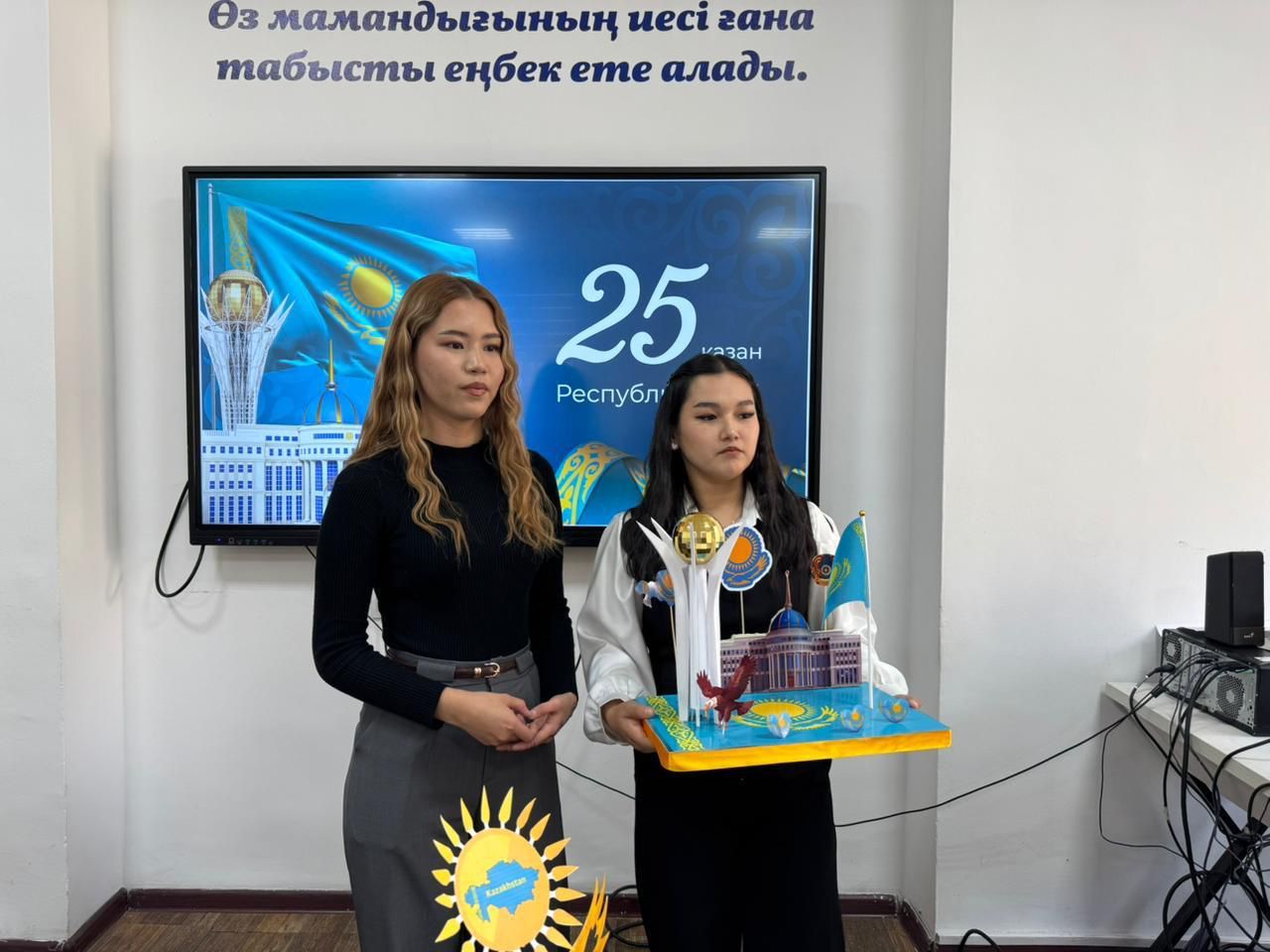 On October 24, 2025, in honor of Republic Day, a model contest titled “Republic Day – The Pillar of an Independent Nation” was held.The purpose of the contest was to develop students’ creative abilities, strengthen their patriotic spirit, and promote the achievements of our country. Participants presented models reflecting the bright future of independent Kazakhstan.First- and second-year students took part in the contest, showcasing meaningful and artistically designed works corresponding to the given theme.The contest was organized by PhD, Acting Associate Professor Galiya Turysbekovna Abilbakieva. The winners and active participants were awarded certificates of appreciation and commemorative gifts, and their dedication and creativity received high praiseThe event contributed to the formation of a creative environment, the development of patriotism among young people, and a deeper understanding of Republic Day as a symbol of independence and national unity.