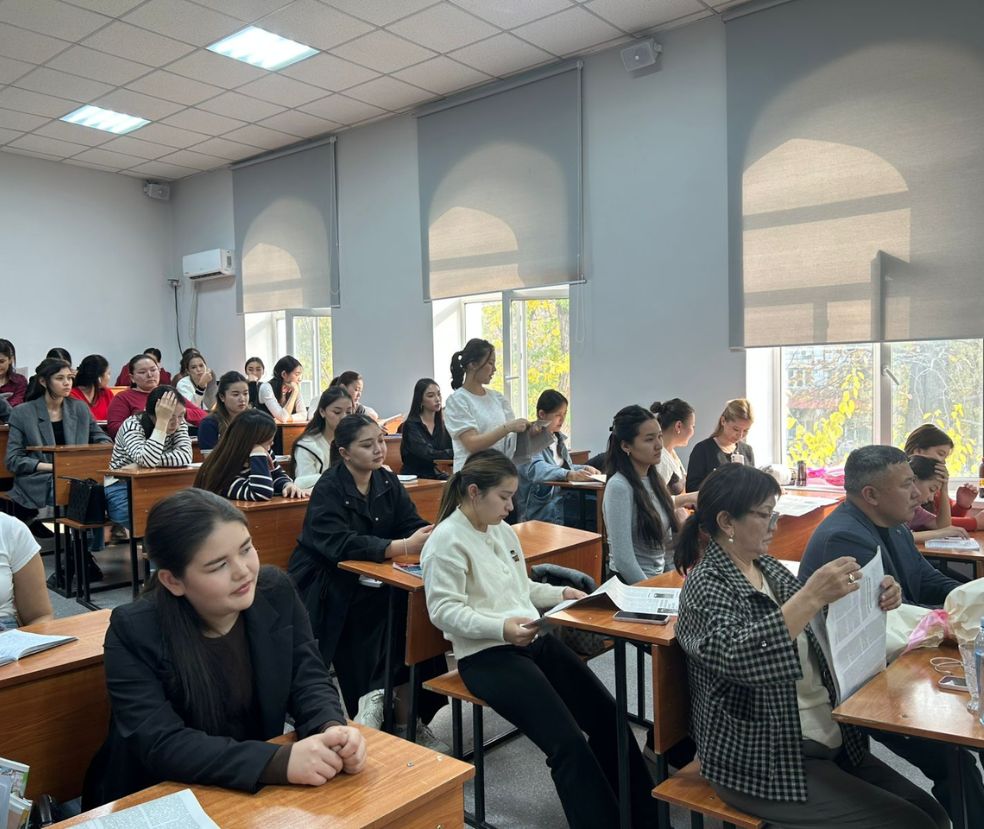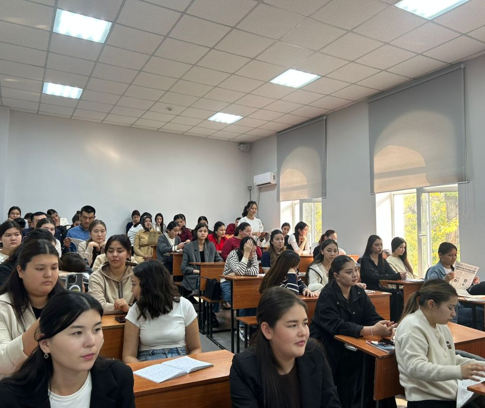 At the end of the lecture, the presentation of R.R. Abishova’s book “The Source of My Happiness…” took place. The students actively participated by asking questions related to national spirit, cultural values, upbringing, and moral education, receiving comprehensive answers.