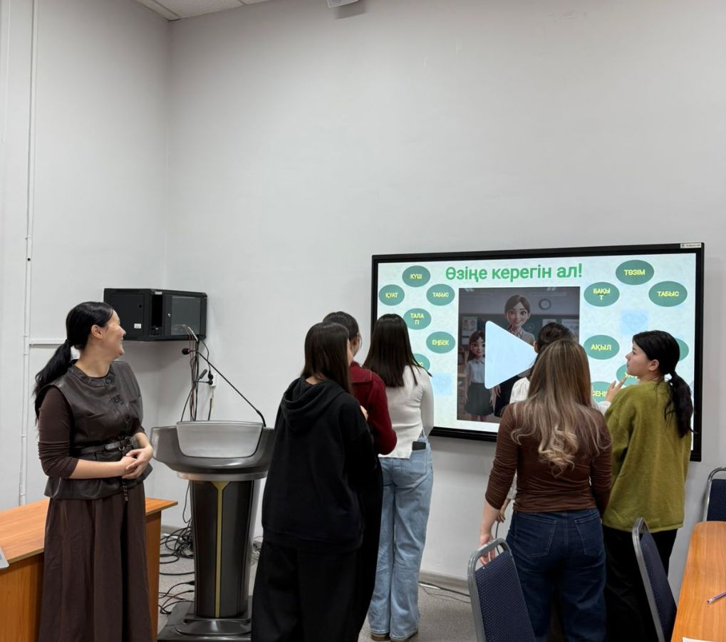 On February 9, 2026, the Department of Preschool Education and Social Pedagogy of the Faculty of Pedagogy and Psychology at Abai Kazakh National Pedagogical University organized a lecture on the topic “Mental Development and Age Characteristics of Preschool Children.” The lecture was delivered by Dana Dauirbayeva, a 2nd-year doctoral student of the educational program 8D01201 – “Preschool Education and Upbringing” (academic supervisor — PhD, Acting Associate Professor Assem Bulshekbayeva). The main objective of the lecture was to create conditions for students to gain a deep understanding of the patterns of psychological development of preschool children, their age-related characteristics, and the significance of these aspects in the process of education and upbringing. During the lecture, children’s cognitive processes (perception, thinking, memory, attention, and imagination), as well as emotional and personal development and behavioral characteristics, were examined in accordance with age stages. The lecture content analyzed the key characteristics of psychological development in early childhood, middle, and senior preschool age groups, highlighting their role in organizing the educational process through concrete examples. To enhance students’ engagement, interactive methods such as question-and-answer sessions, discussions, situational tasks, and practical analysis were employed. Students analyzed pedagogical situations from a psychological perspective, taking into account children’s age characteristics. The methods applied during the lecture contributed to integrating theoretical knowledge with practice, fostering a comprehensive understanding of child psychological development, and developing students’ pedagogical thinking. As a result of the lecture, students systematized their knowledge of the psychological development and age characteristics of preschool children and developed practical insights necessary for their future professional activities. The lecture concluded with a feedback activity titled “Mental Well-being: Take What You Need!”, which was conducted in a positive and engaging atmosphere.