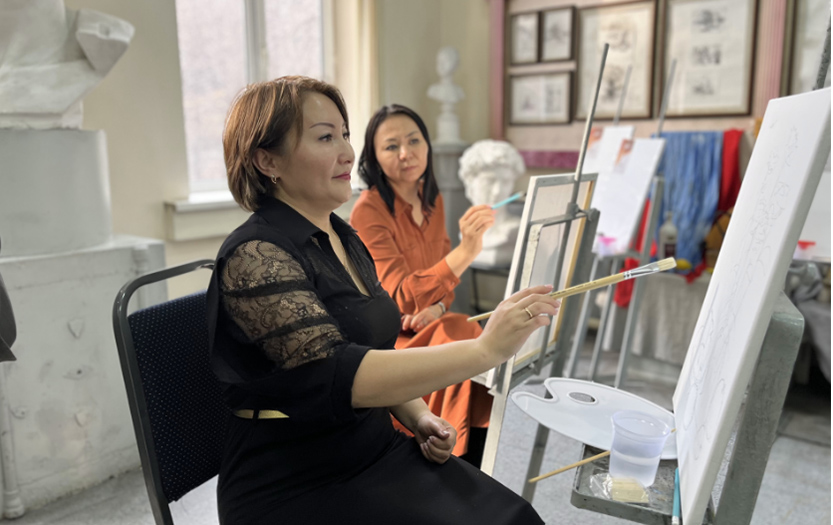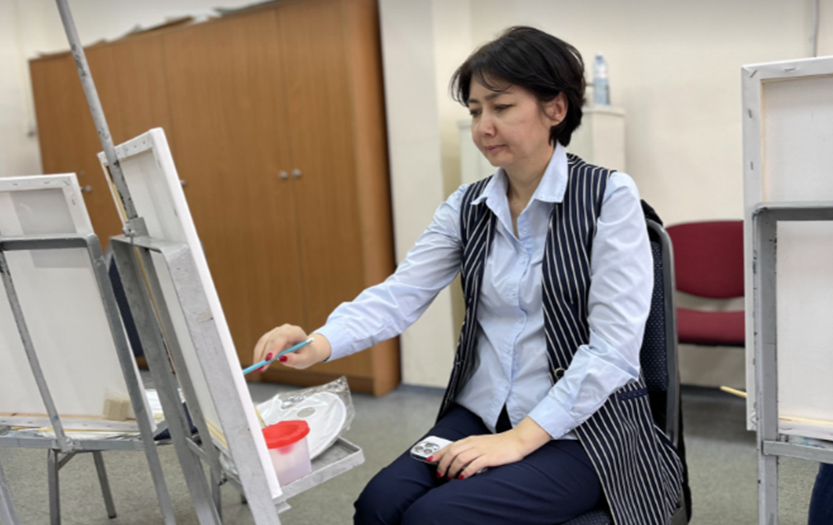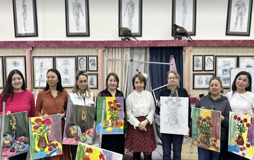 On March 6, 2023, the staff of Institute of Arts, Culture and Sports, teaching staff of Art Education Department and famous artists of the country congratulated university women with the International Women`s Day, March 8, and held a master class on "Search for Tender Souls". The festive event, organised at the initiative of the institute`s director, Taiyrzhan Iskakov, was held at a high level. The rector of the university, Darkhan Bilyalov, came specially to the opening of the master class and congratulated the women of our team with the holiday. During the master class, beautiful live floral and decorated still lifes were presented, and the painted pictures were presented to the ladies as a festive gift.
