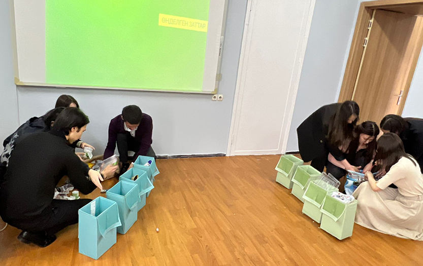 The guests gave a lecture and demonstrated the separate collection of waste in Almaty for students and teachers. The organizers were faced with the task of implementing the SDG goals in KazNPU named after. Abay (No. 12 Rational consumption and production) and attracting the attention of undergraduate students of KazNPU named after Abay (environmentalists, biologists, etc.) to the sorting of municipal solid waste.