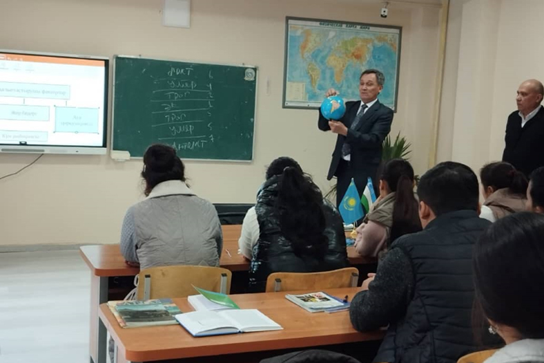 Within the framework of implementation of the agreement on cooperation between Abai KazNPU and Kokand State Pedagogical Institute named after Mukimi (Uzbekistan) on cooperation in the field of science and education, Professor of the Department of Geography and Ecology of the Institute of Natural Science and Geography Bahadurkhan Abdimanapov held a guest lecture and master classes for students of the Faculty of Natural Disciplines of the partner university from 13 to 22 November 2023.